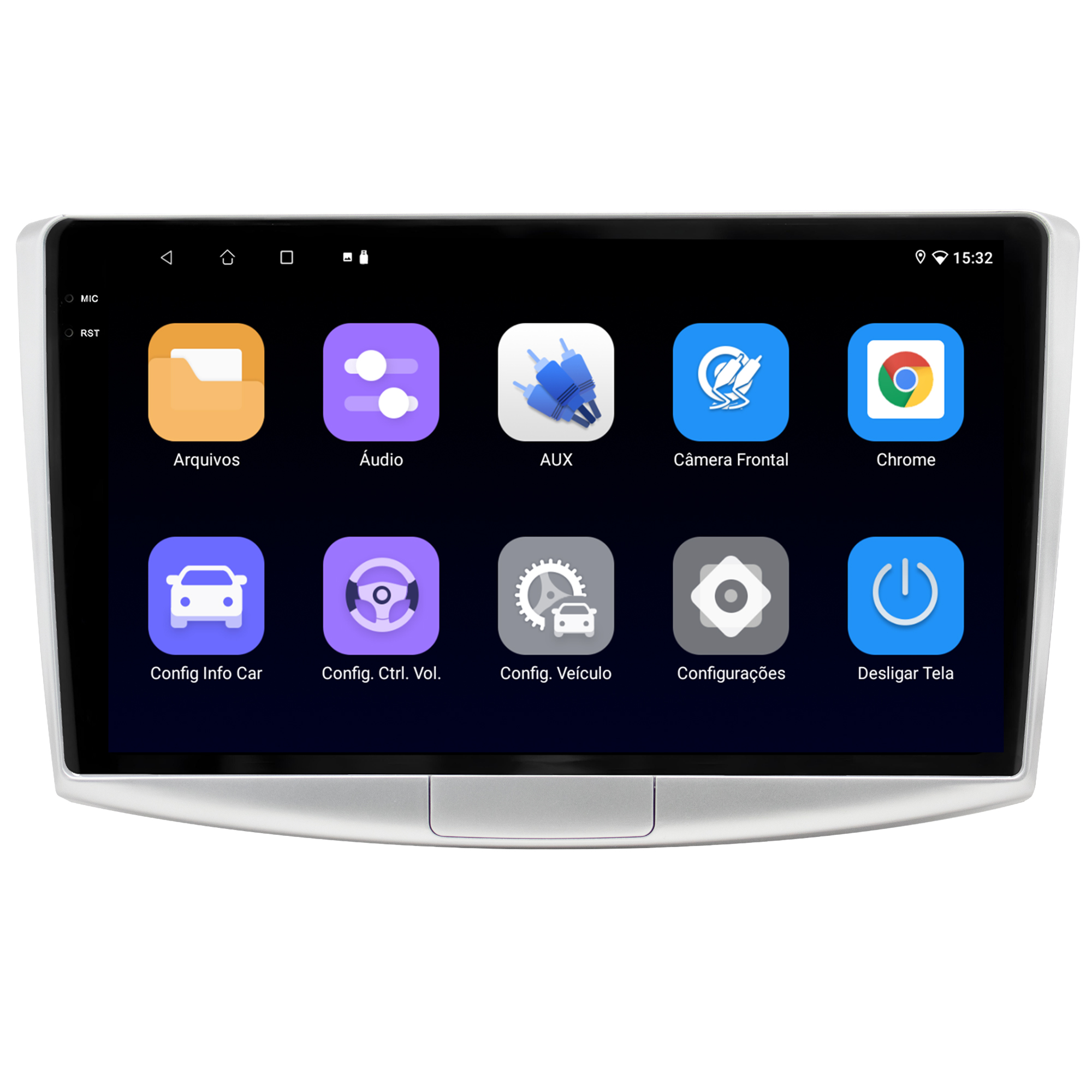 - Bluetooth: Permite realizar e receber ligações. Possui agenda telefônica com pesquisa de nomes, histórico de chamadas, funções auto-conectar.