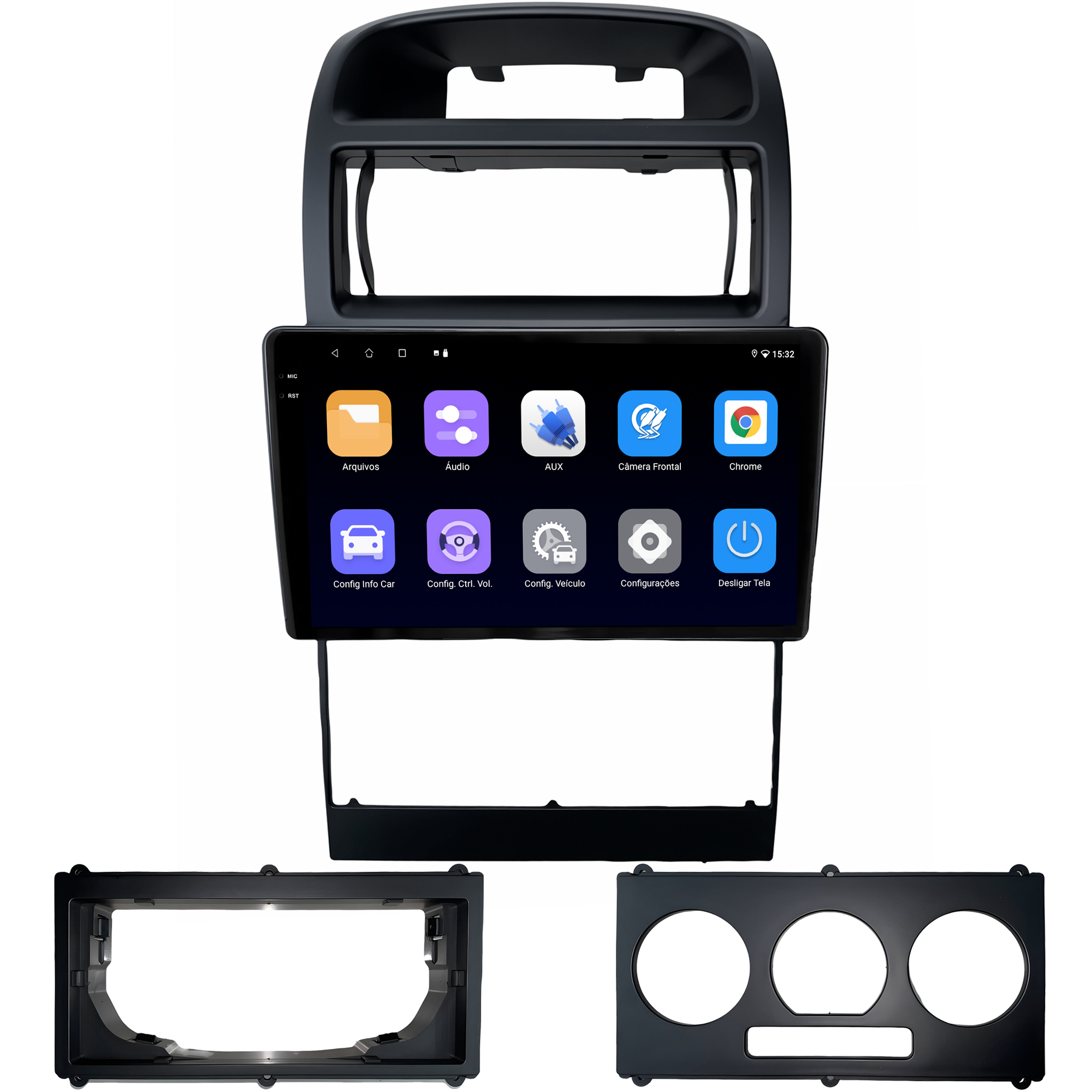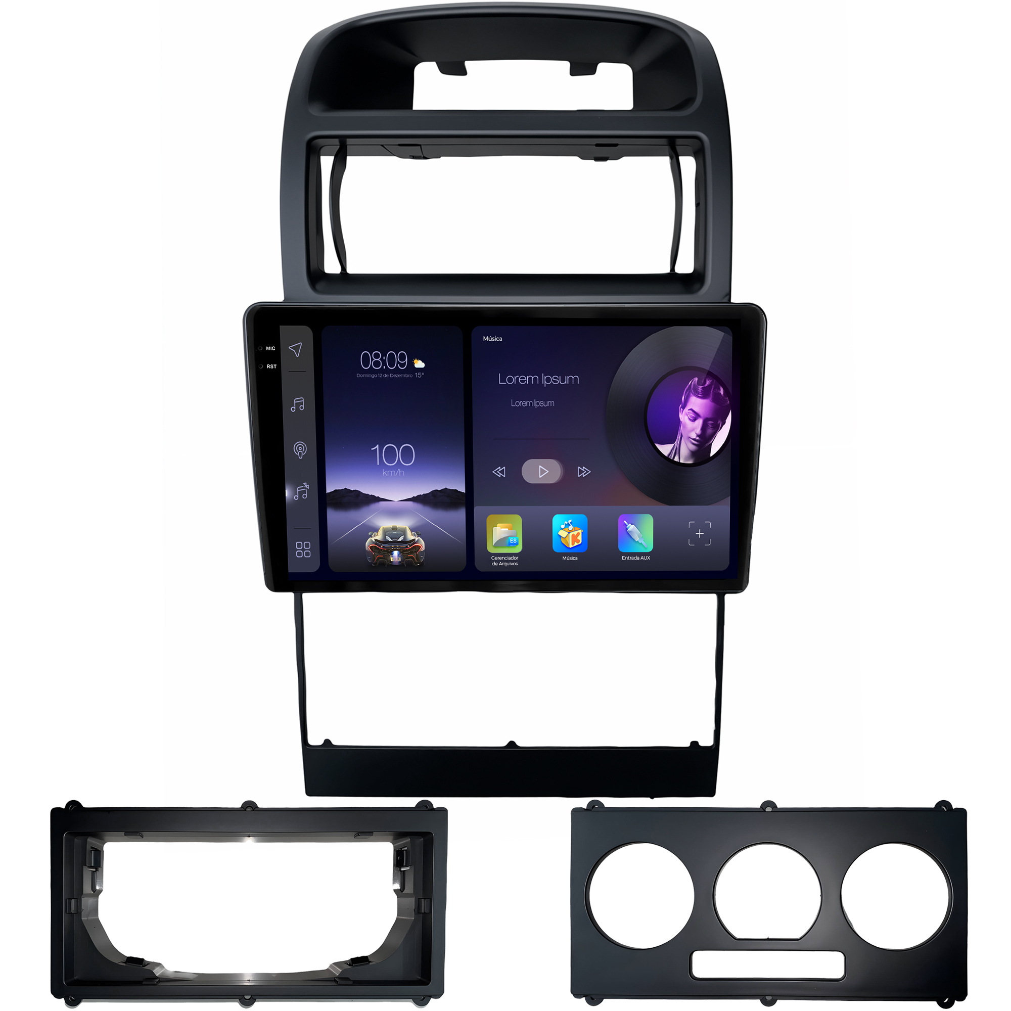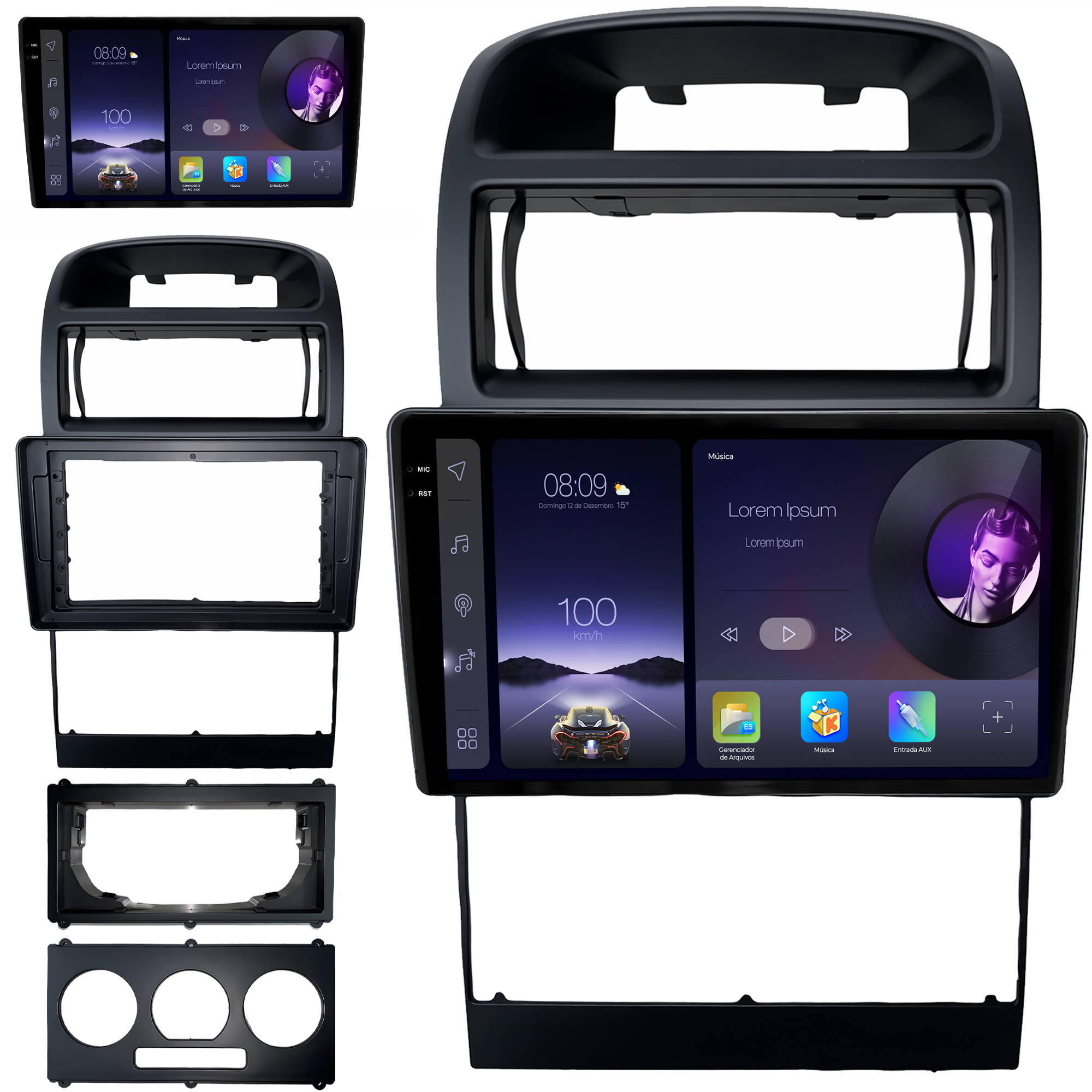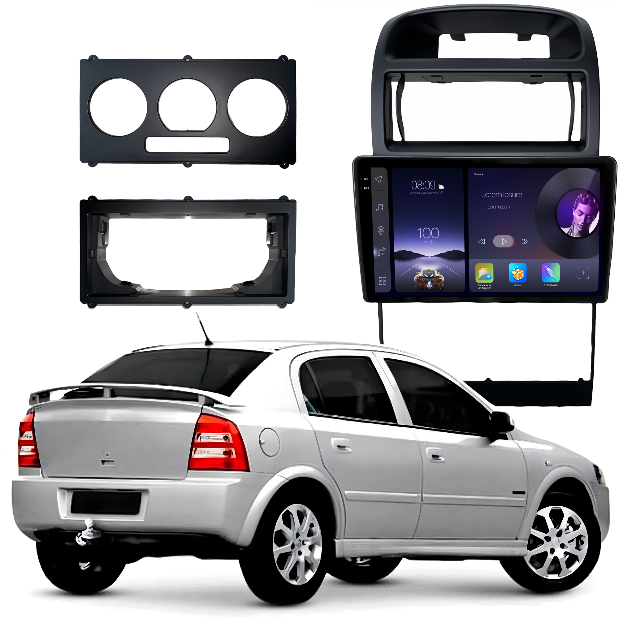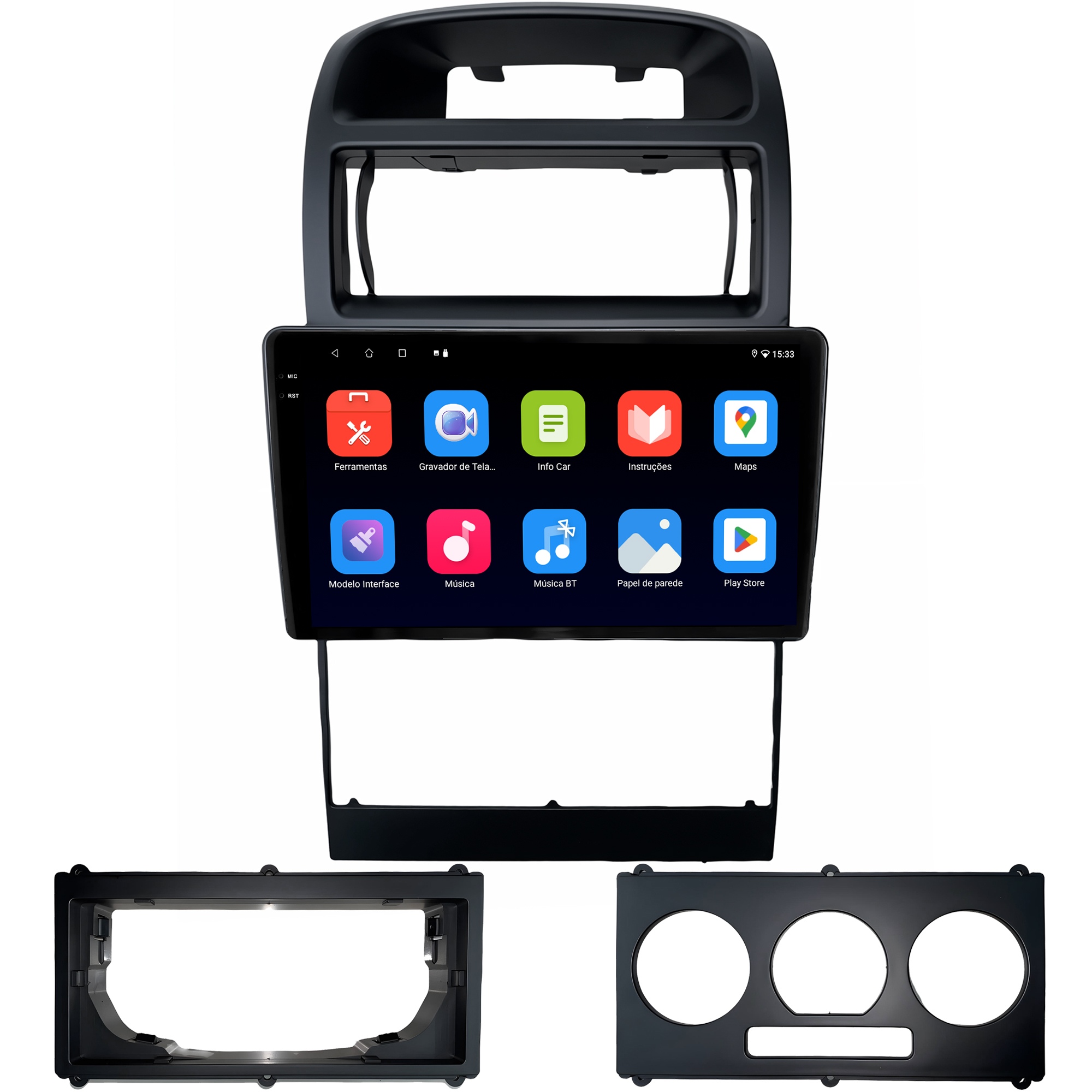 - Moldura específica para o painel do seu carro