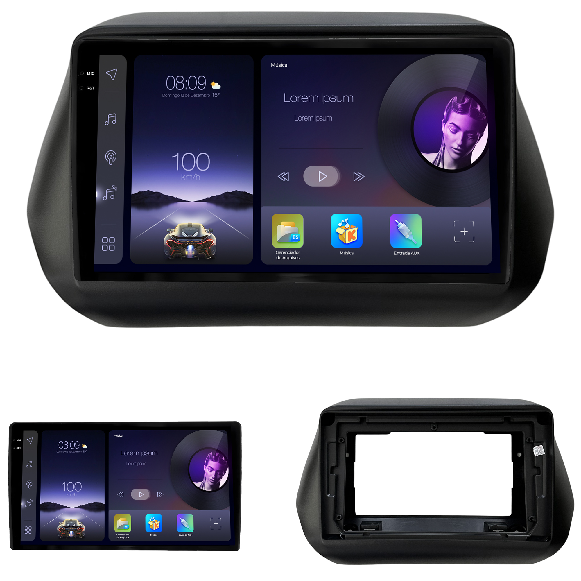 - Moldura específica para o painel do seu carro