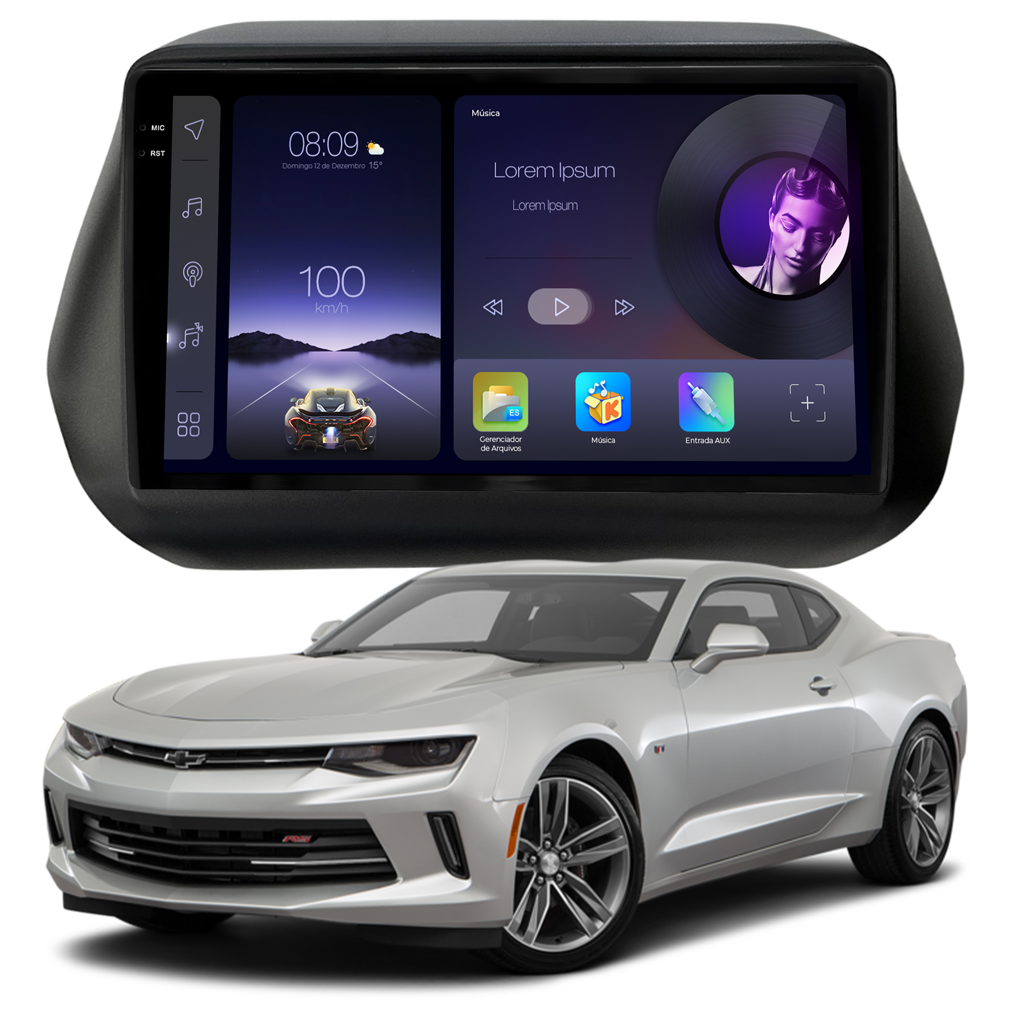 - Função Multi UI: Permite a personalização da interface da multimidia com 23 opções variadas da interface principal e secundária.
