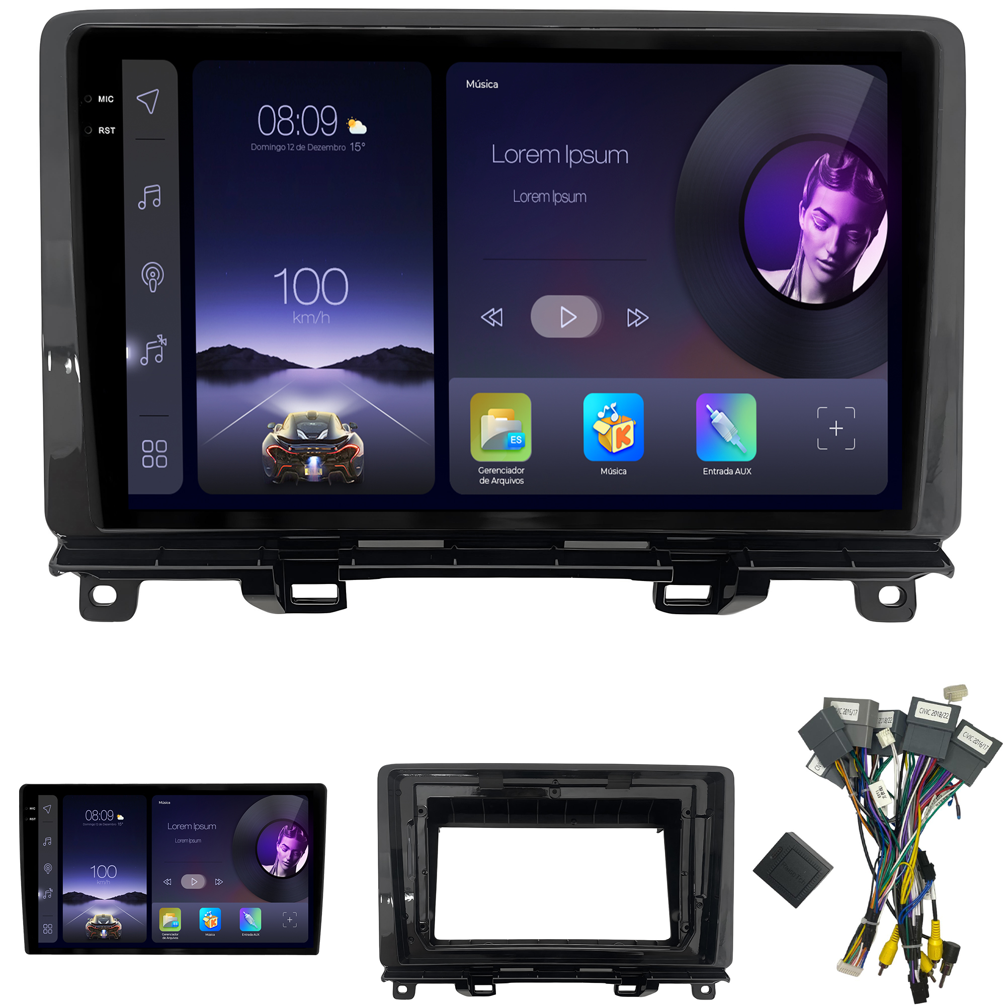 - Moldura específica para o painel do seu carro