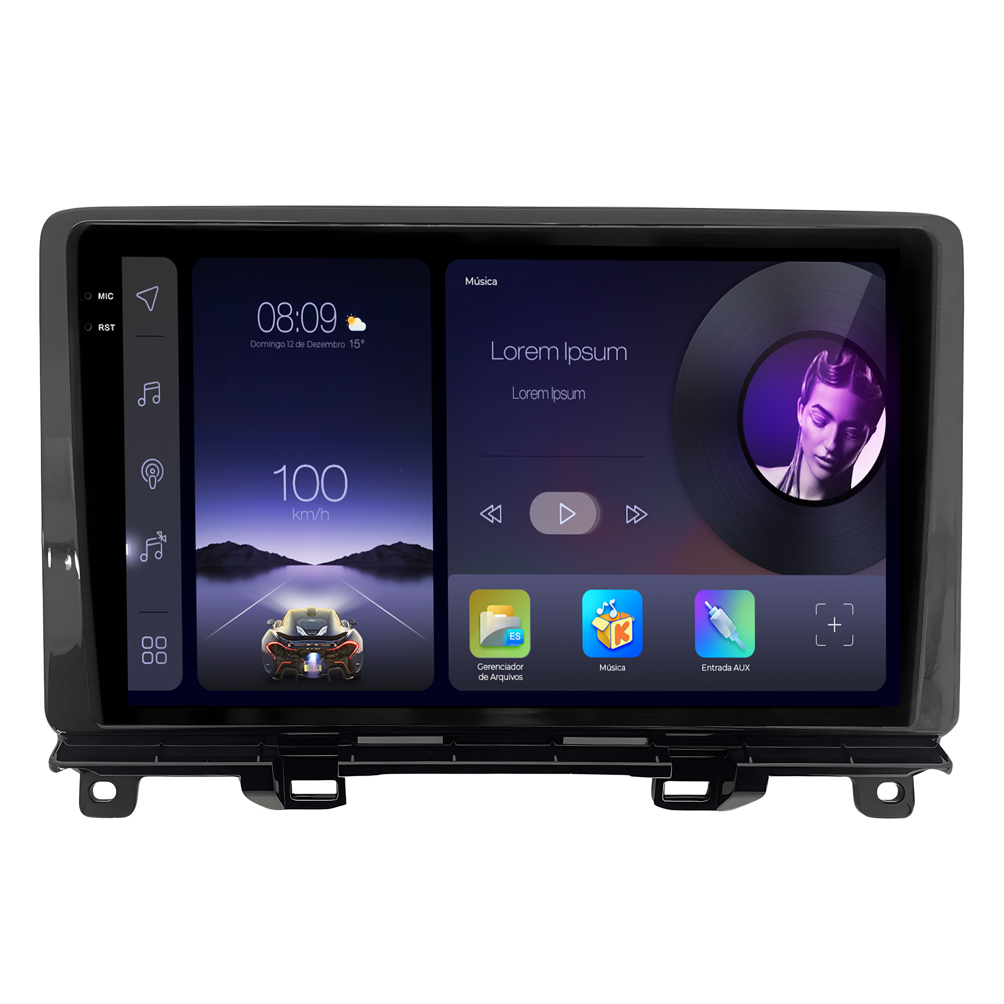 - Função Multi UI: Permite a personalização da interface da multimidia com 23 opções variadas da interface principal e secundária.