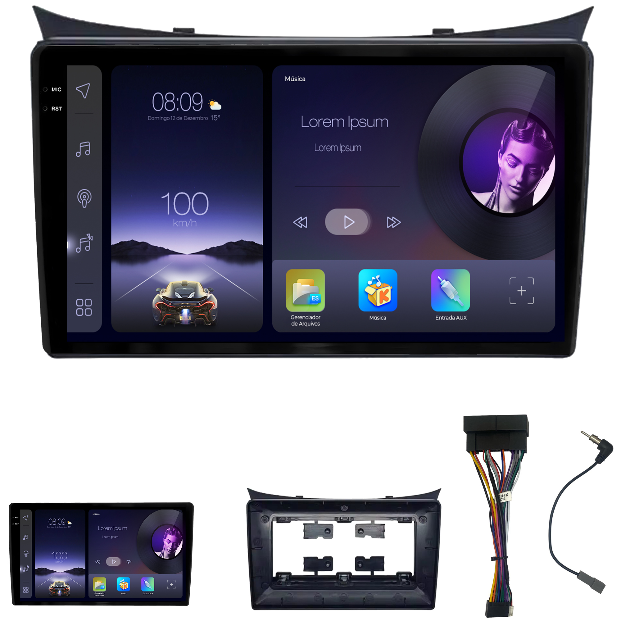 - Moldura específica para o painel do seu carro