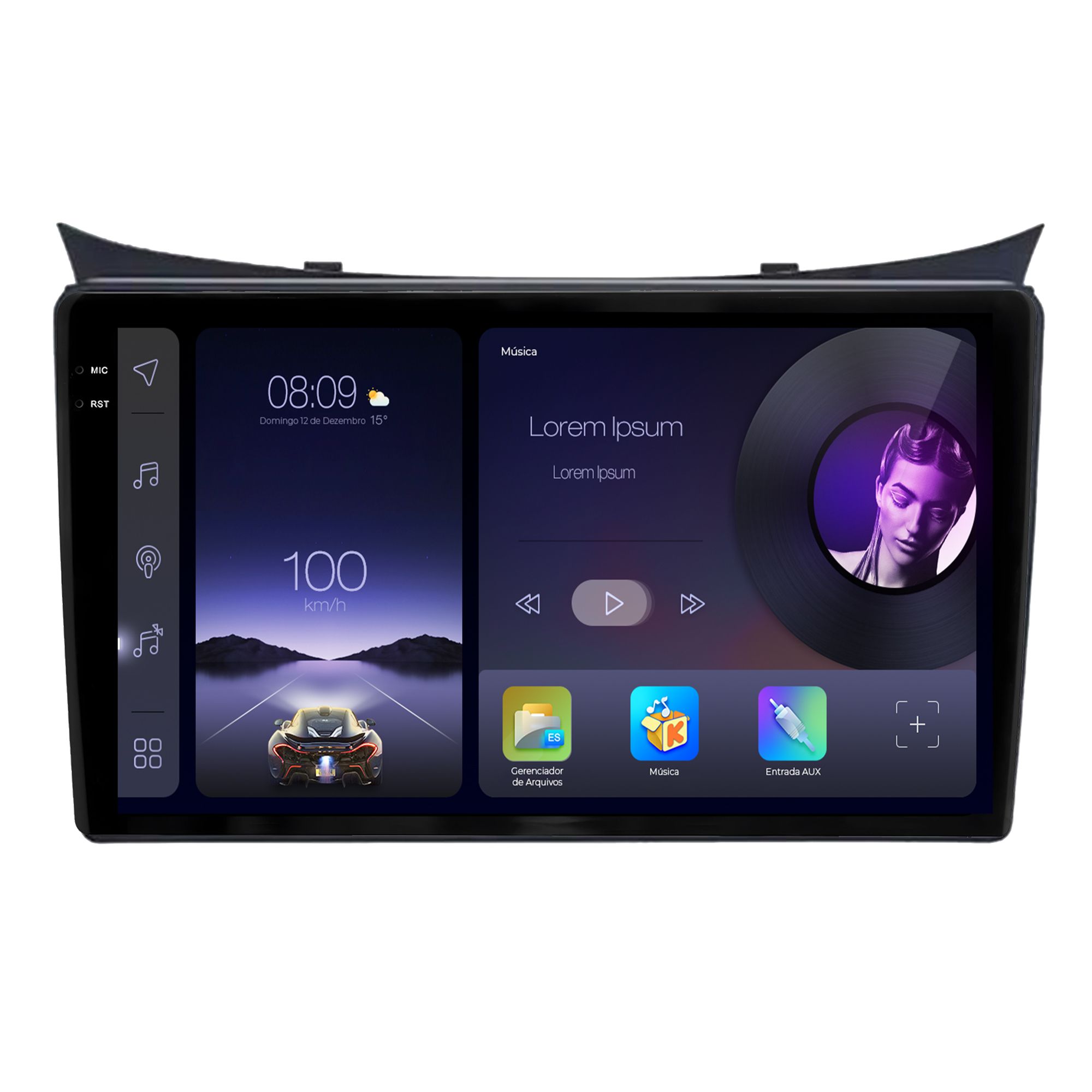 - Função Multi UI: Permite a personalização da interface da multimidia com 23 opções variadas da interface principal e secundária.