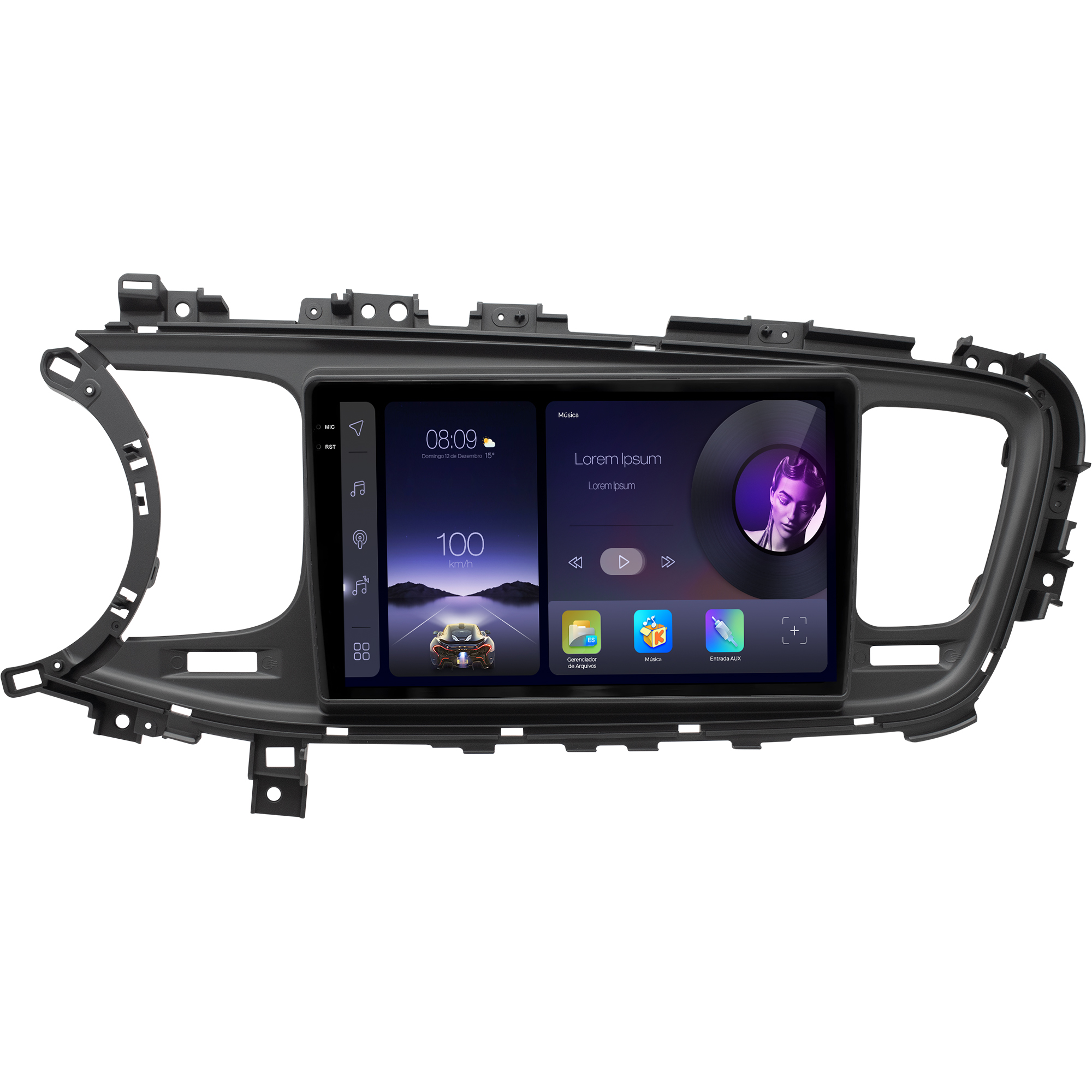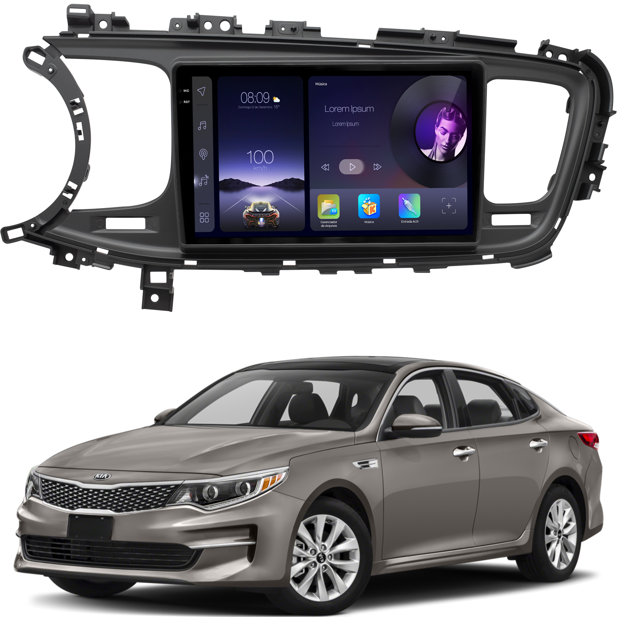 - Moldura específica para o painel do seu carro