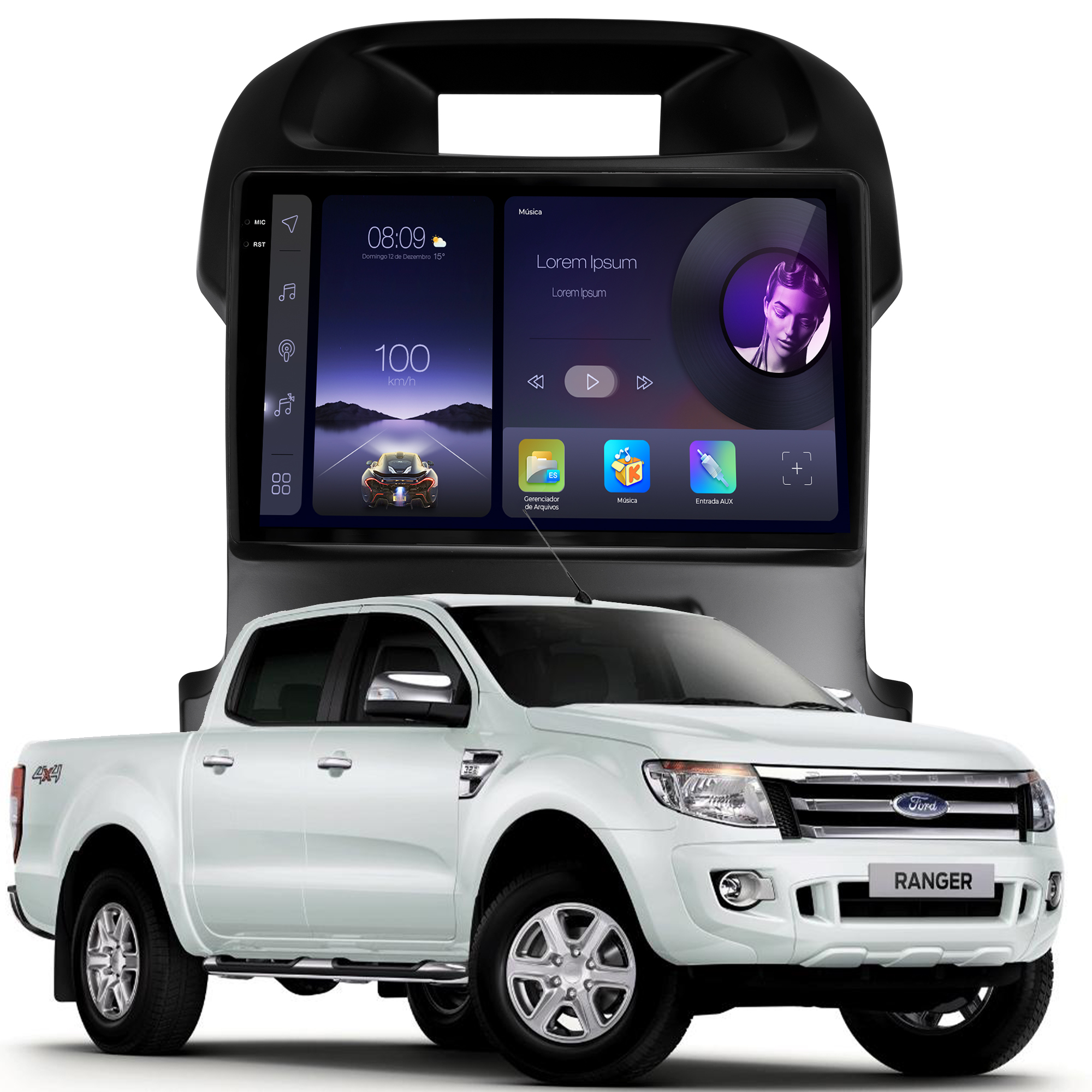 - Função Multi UI: Permite a personalização da interface da multimidia com 23 opções variadas da interface principal e secundária.