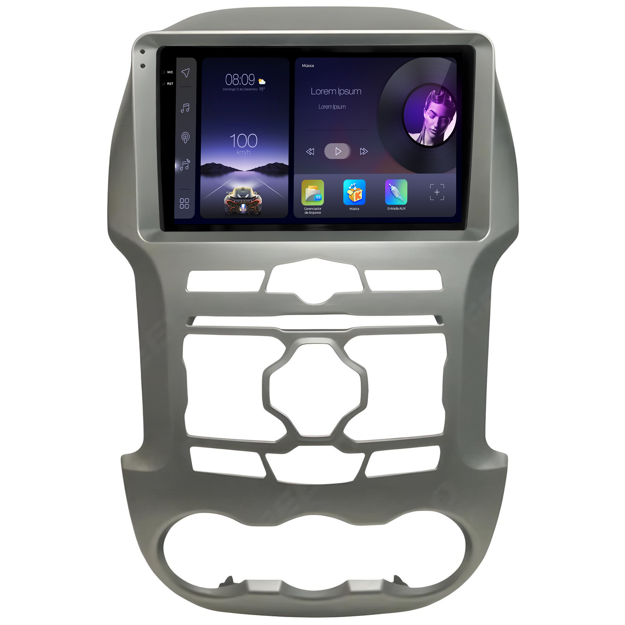 - Função Multi UI: Permite a personalização da interface da multimidia com 23 opções variadas da interface principal e secundária.