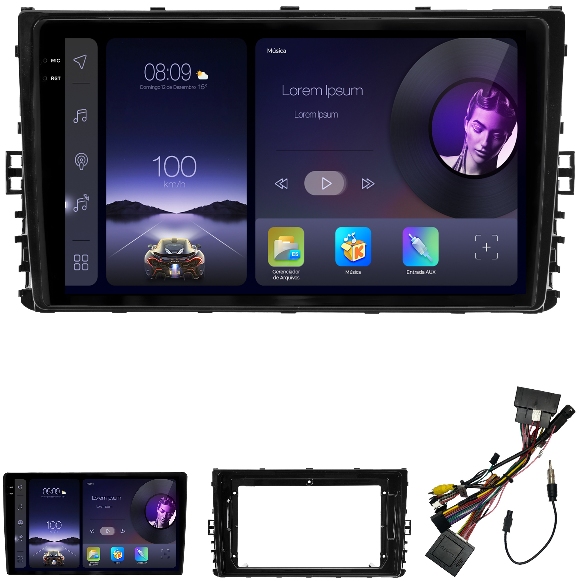 - Moldura específica para o painel do seu carro
