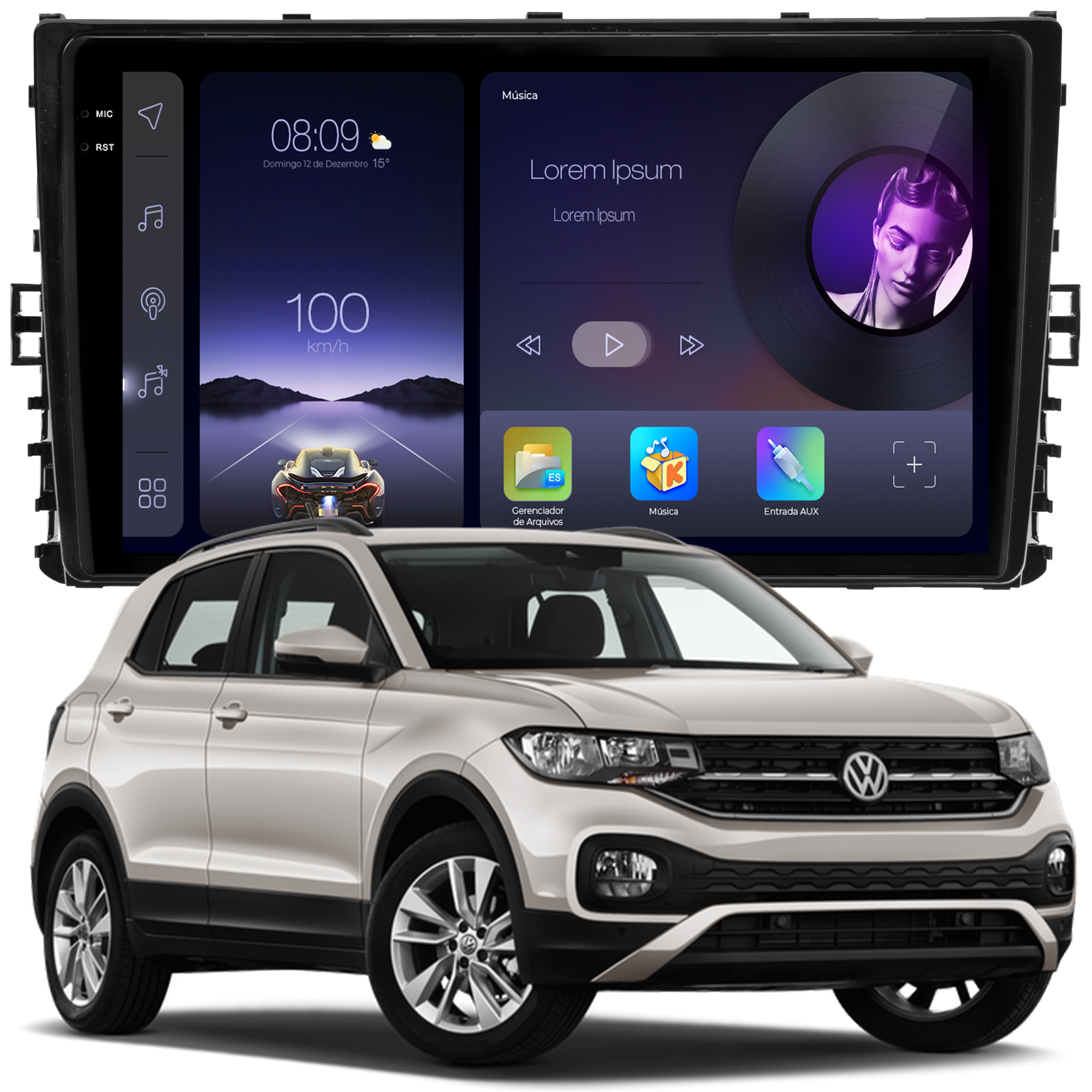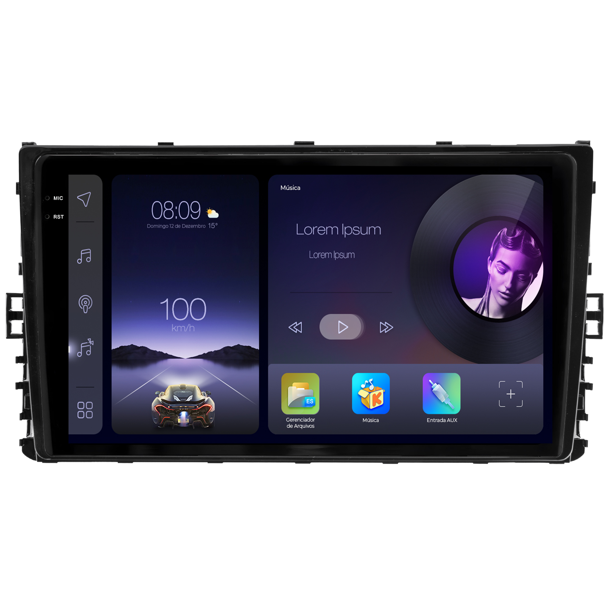 - Função Multi UI: Permite a personalização da interface da multimidia com 23 opções variadas da interface principal e secundária.