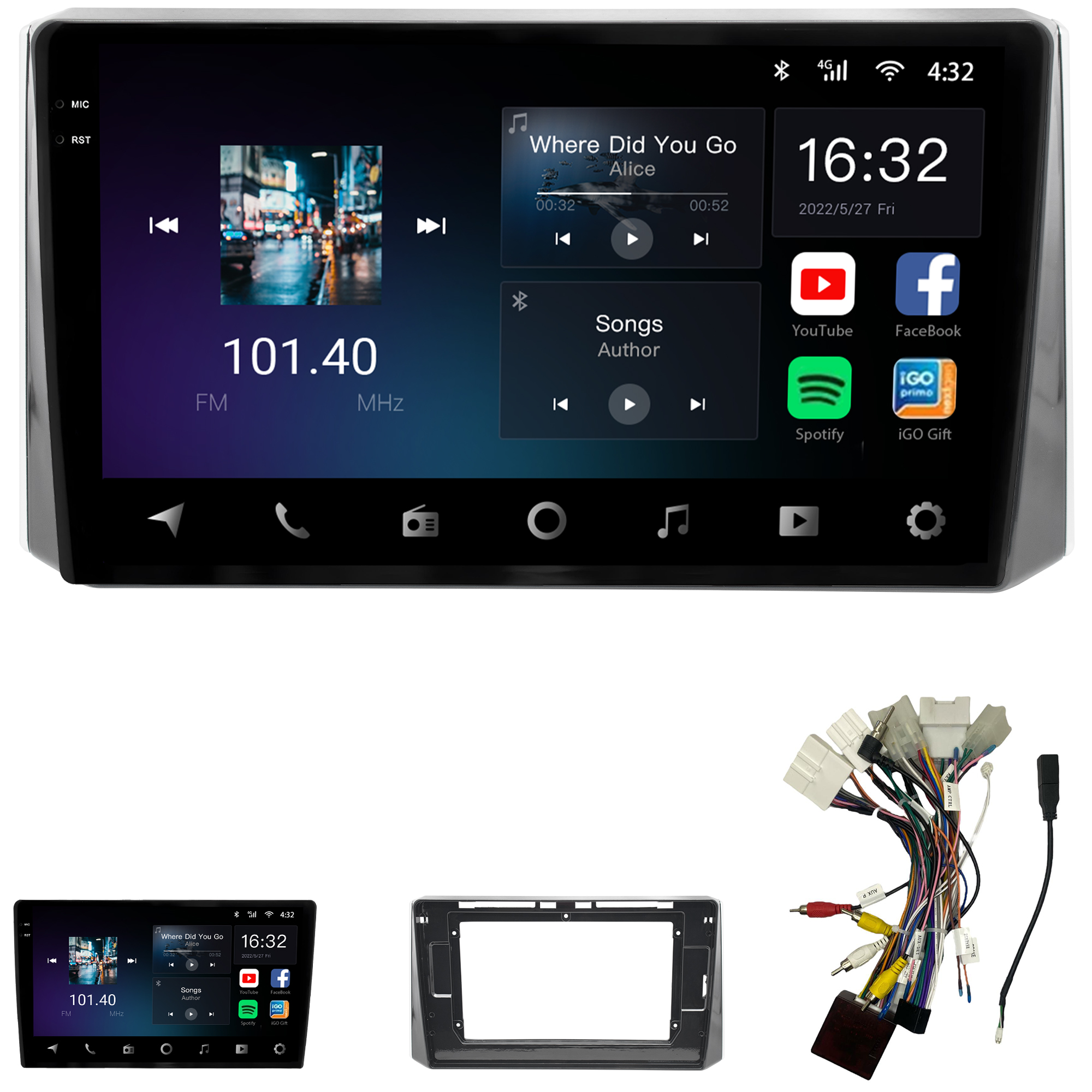 • Bluetooth: Permite realizar e receber ligações. Possui agenda telefônica com pesquisa de nomes, histórico de chamadas, funções auto-conectar.