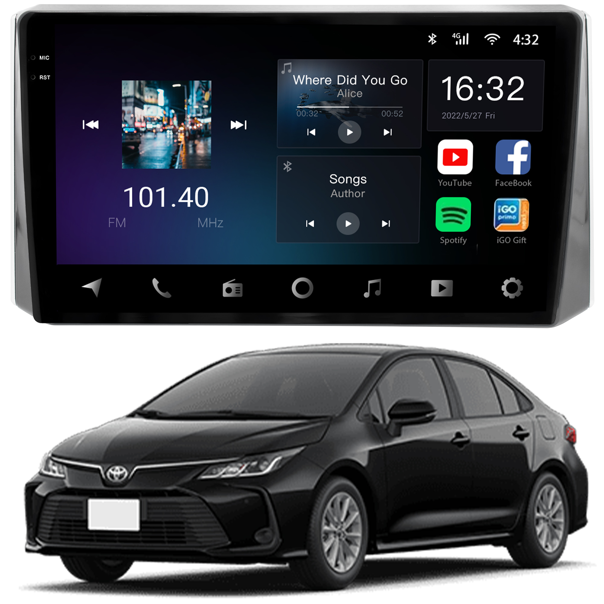 MULTIMÍDIA AIKON CORE RED 2RAM 64GB QLED 10″ COROLLA 2020 A 2021