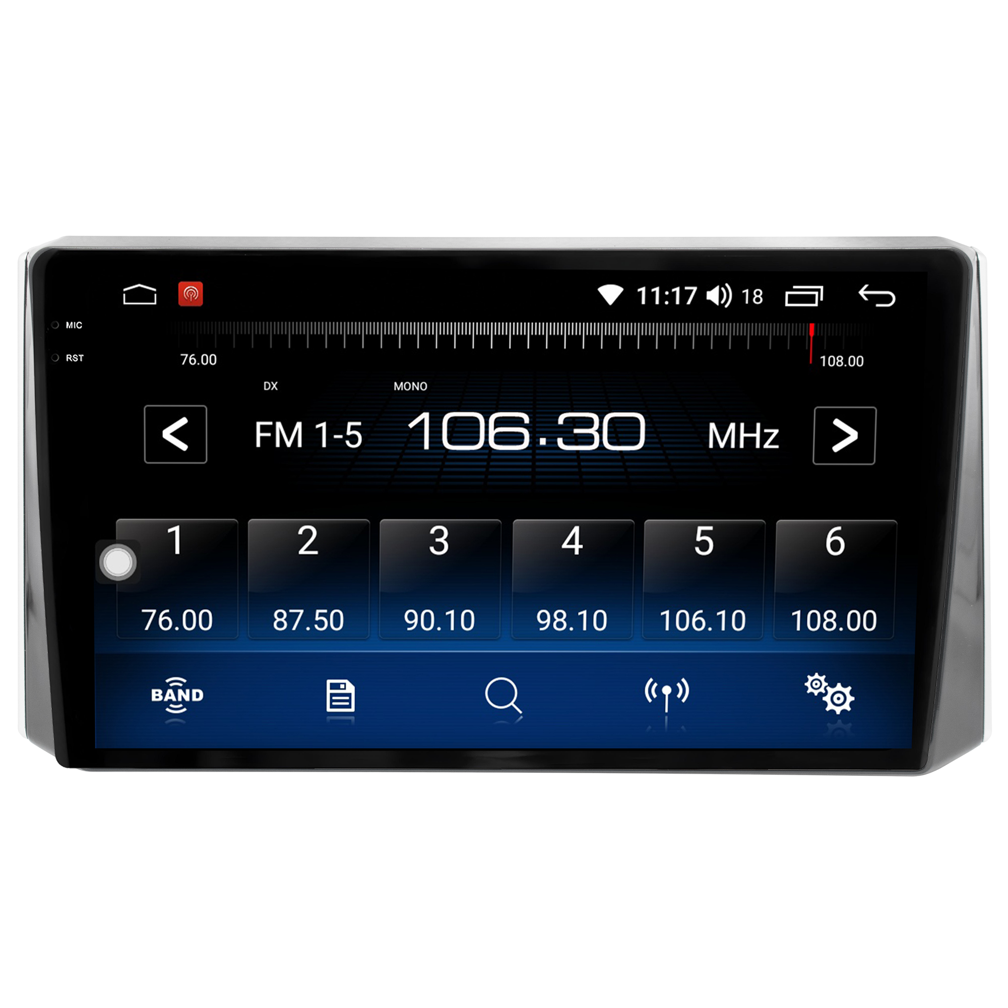 • Rádio FM com busca automática, memorização de até 18 estações FM.