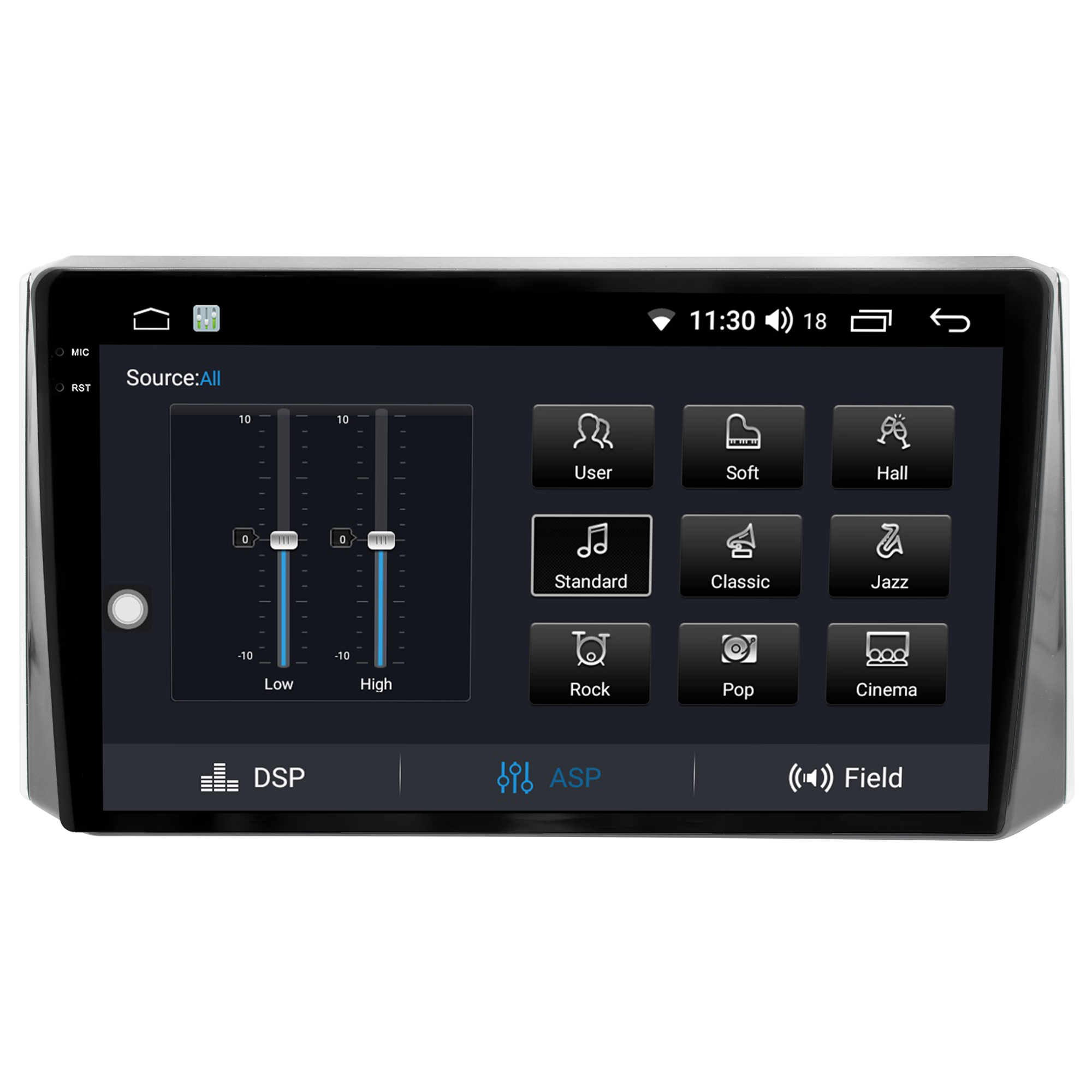 • Equalização Bass/Middle/Treble e faixas de equalização predefinidas com Classic jazz, pop, Speech e Rock.