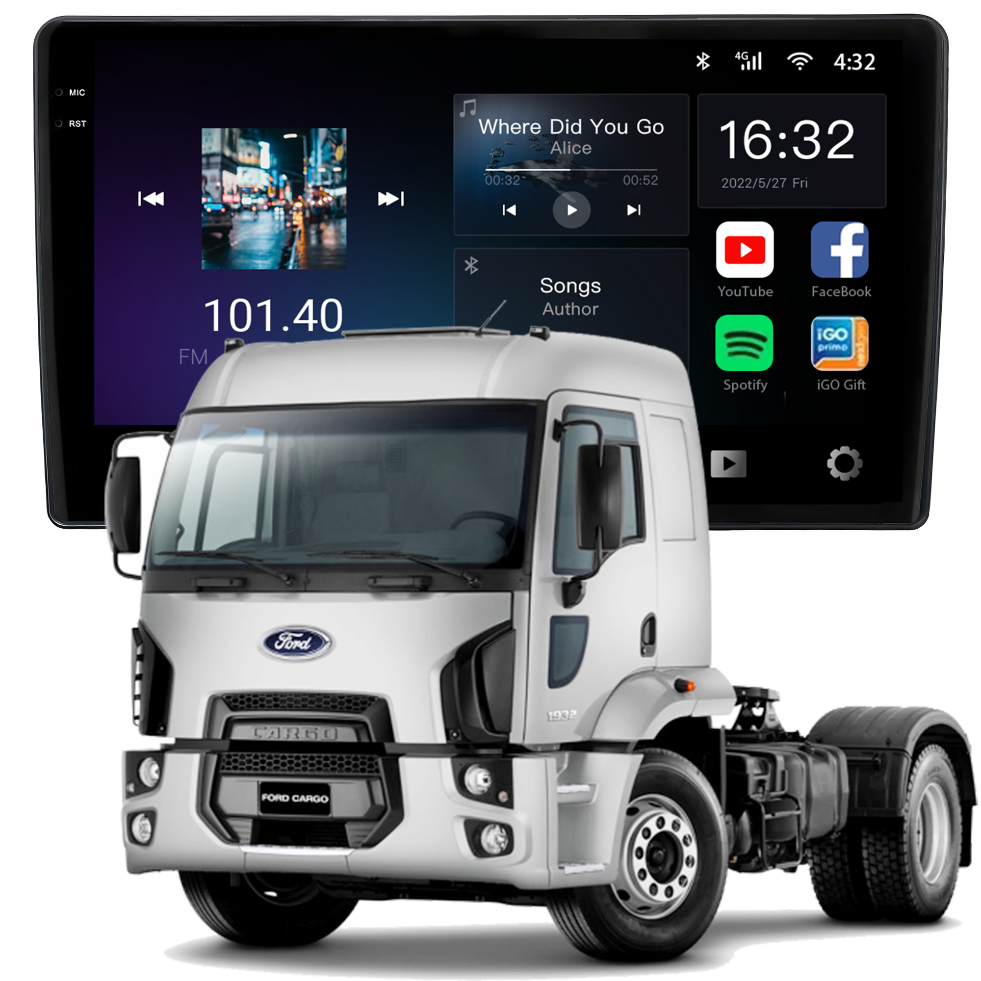 - Bluetooth: Permite realizar e receber ligações. Possui agenda telefônica com pesquisa de nomes, histórico de chamadas, funções auto-conectar.
