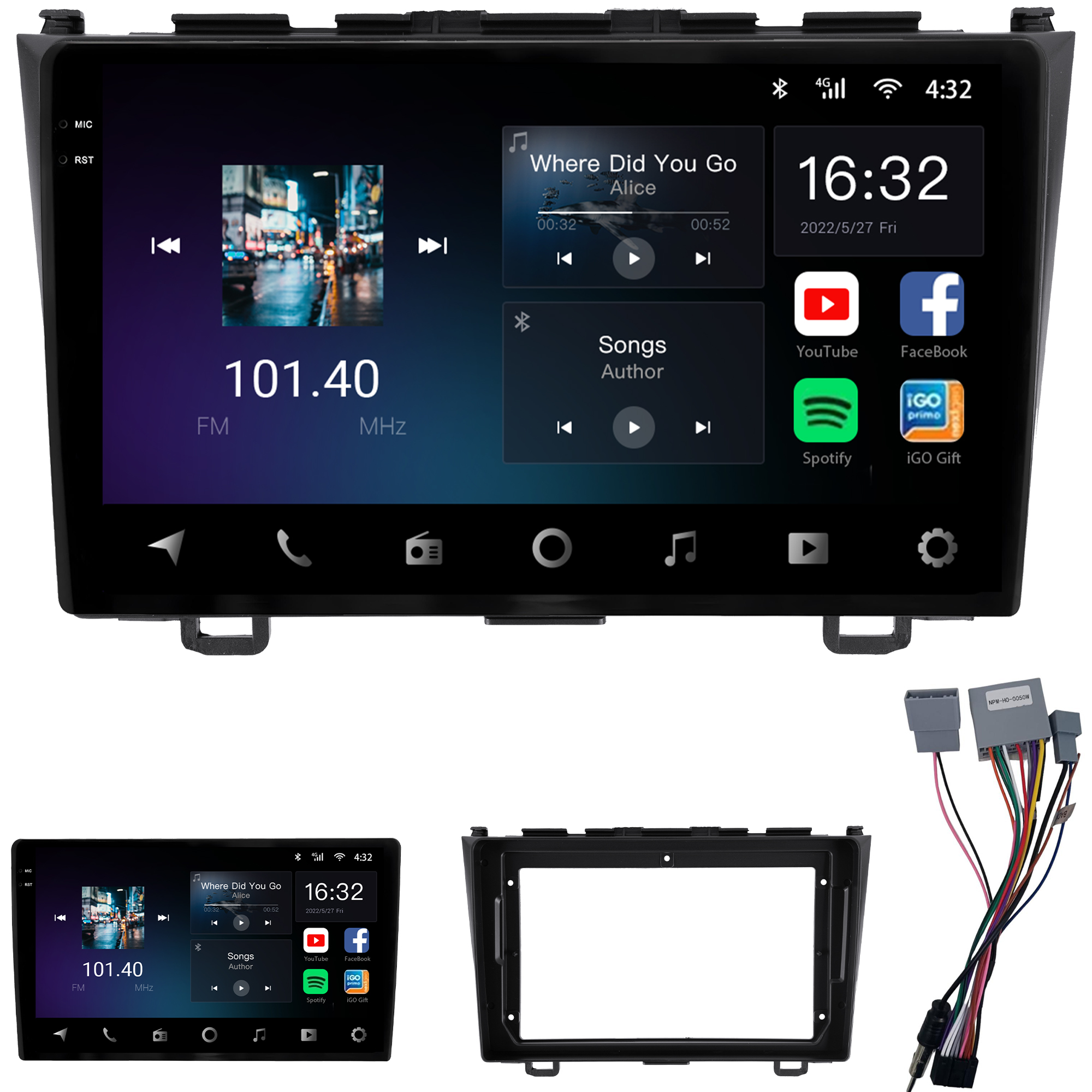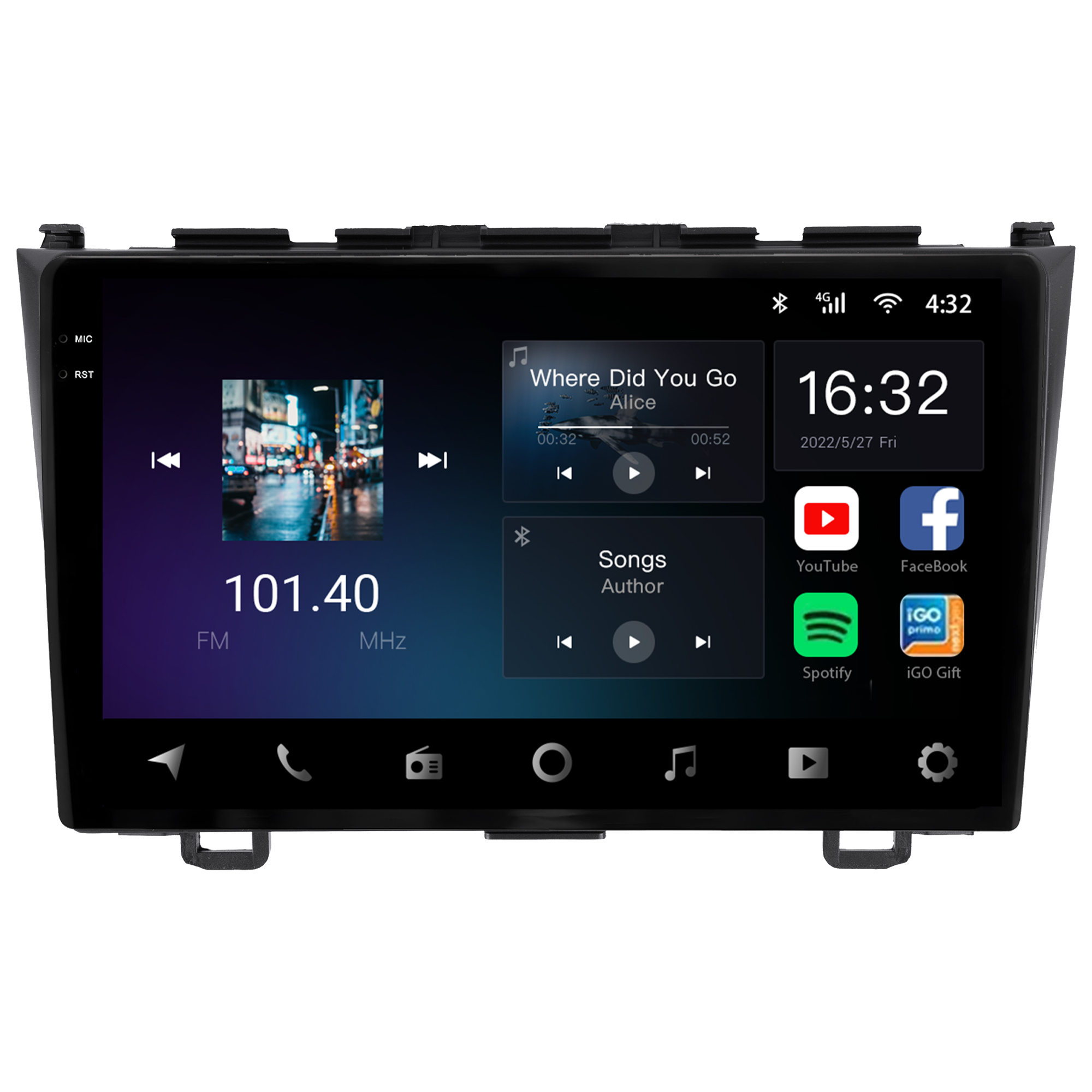 - Tela capacitiva 9 polegadas de vidro duplo super sensível ao toque e ultra resistente