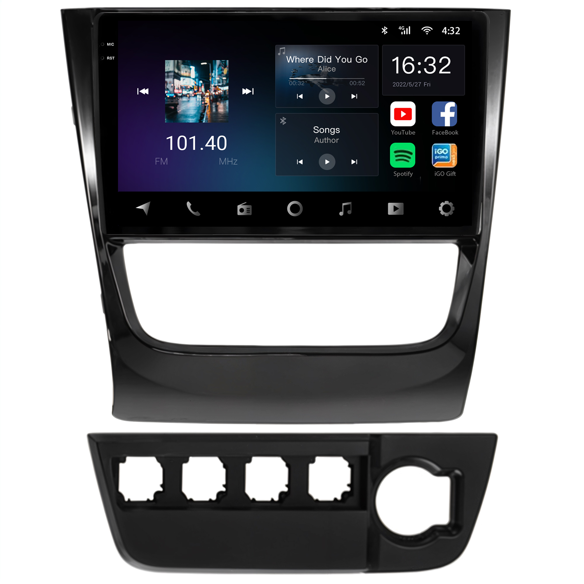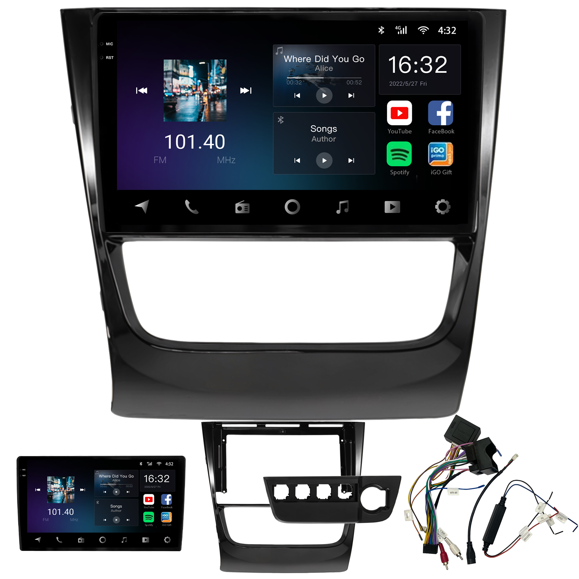 - Tela capacitiva 9 polegadas de vidro duplo super sensível ao toque e ultra resistente