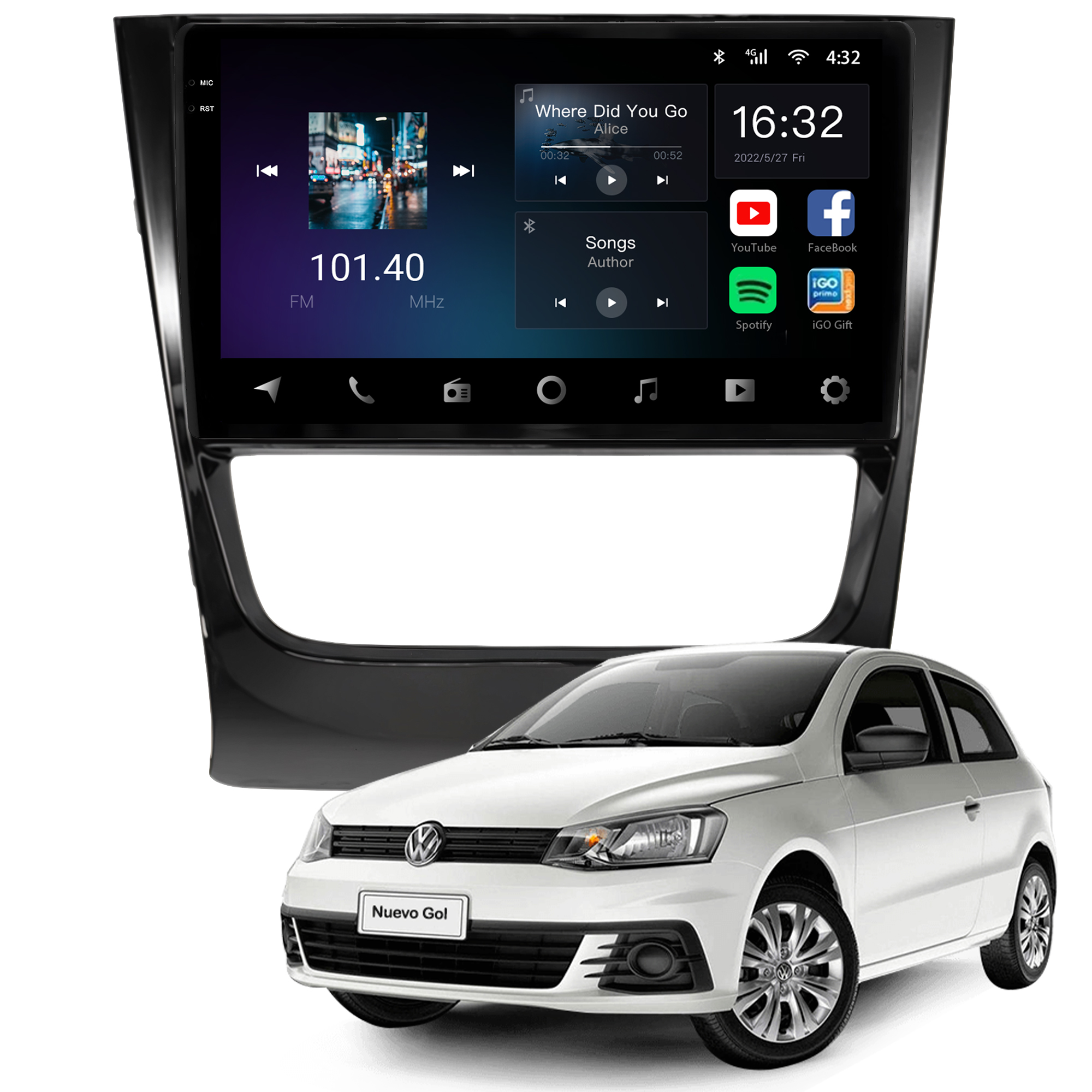- Bluetooth: Permite realizar e receber ligações. Possui agenda telefônica com pesquisa de nomes, histórico de chamadas, funções auto-conectar.