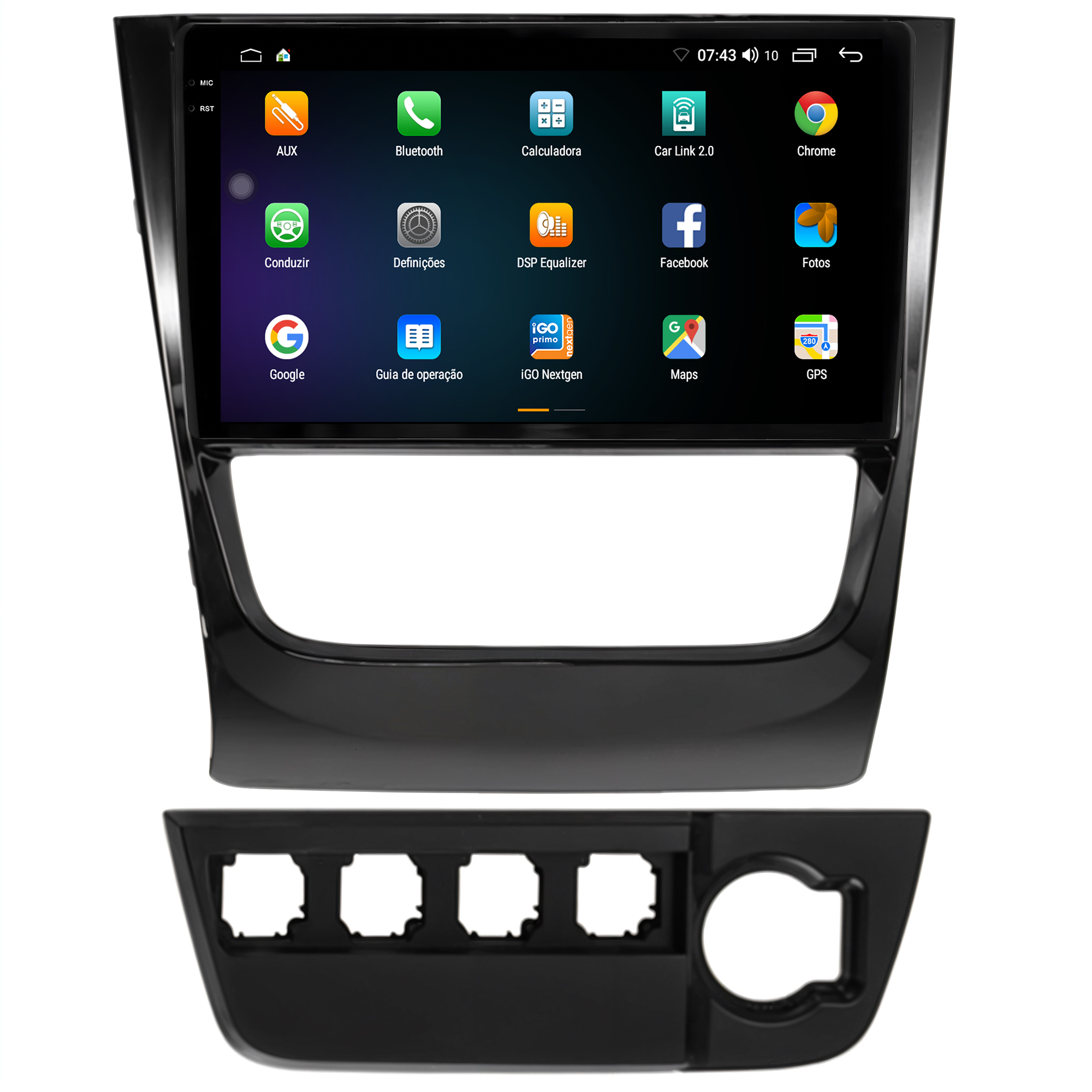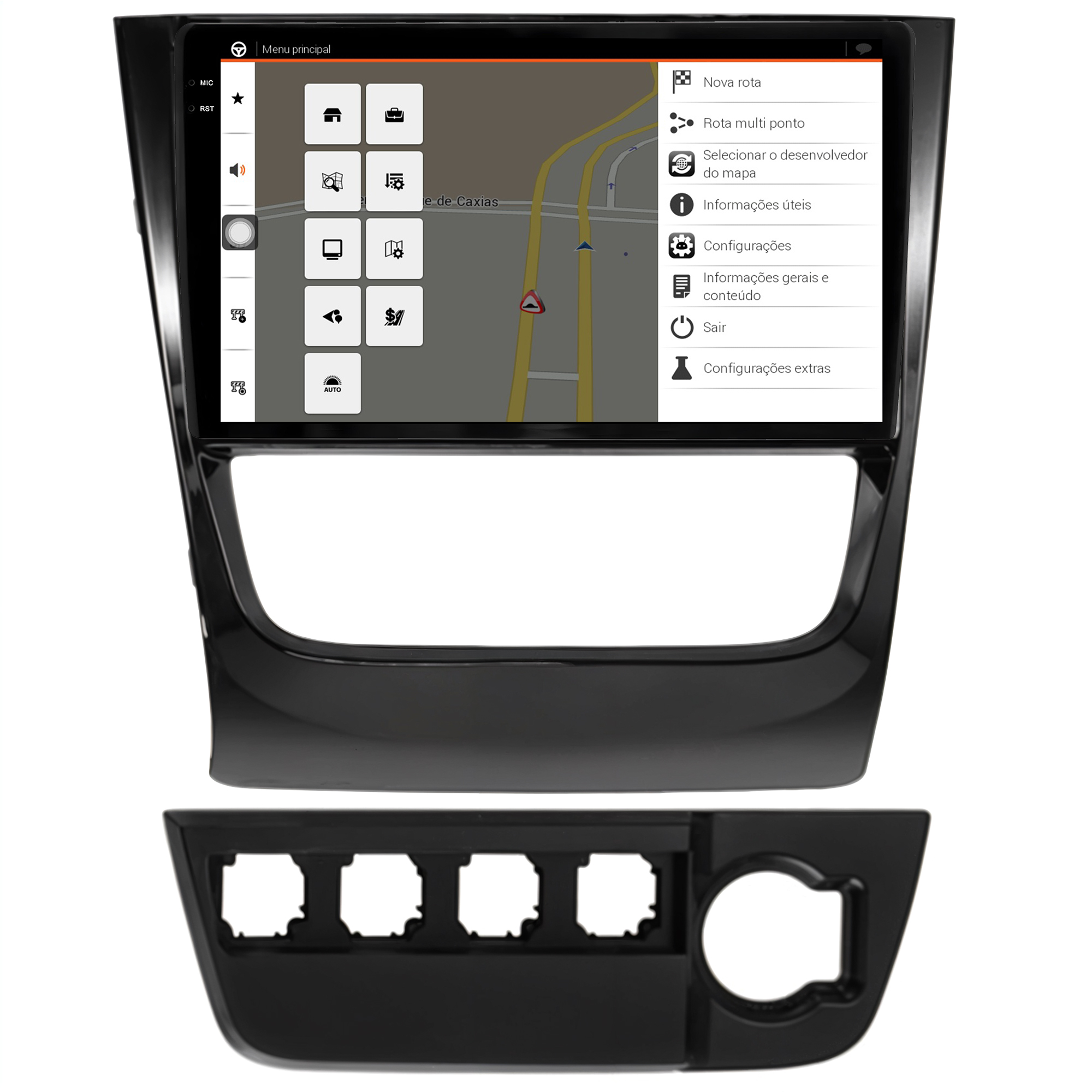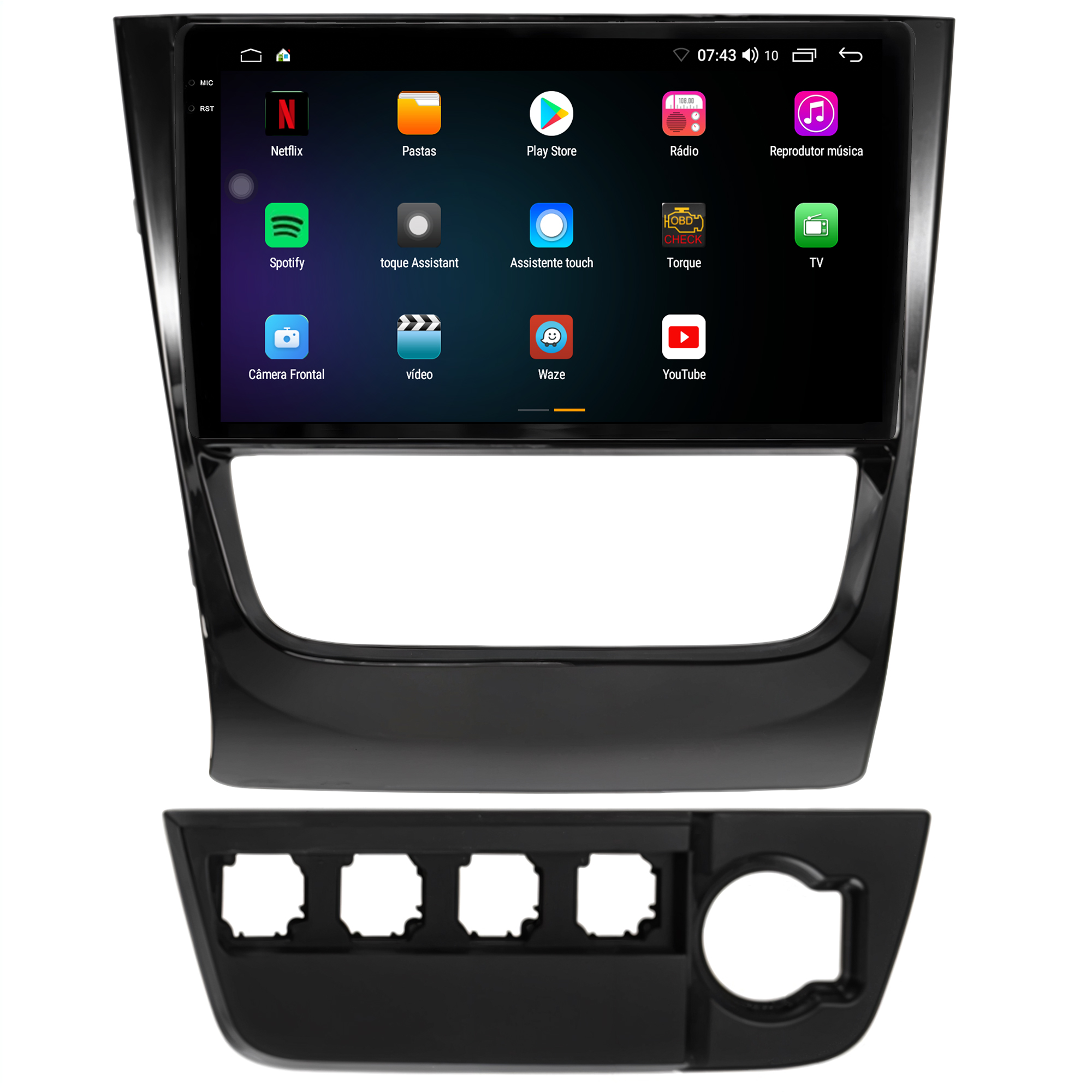 - Moldura específica para o painel do seu carro