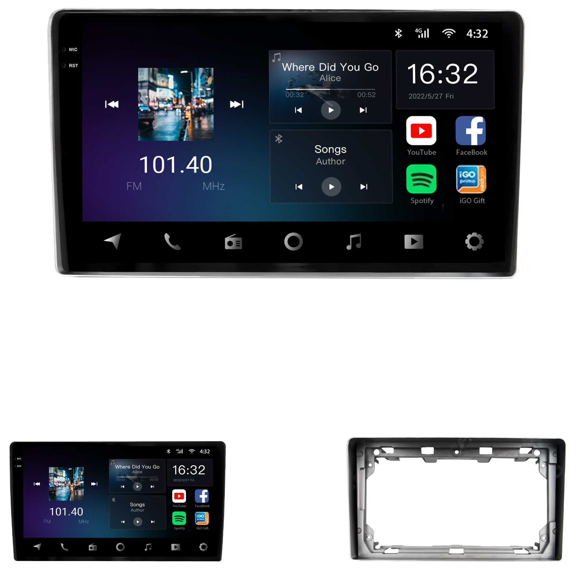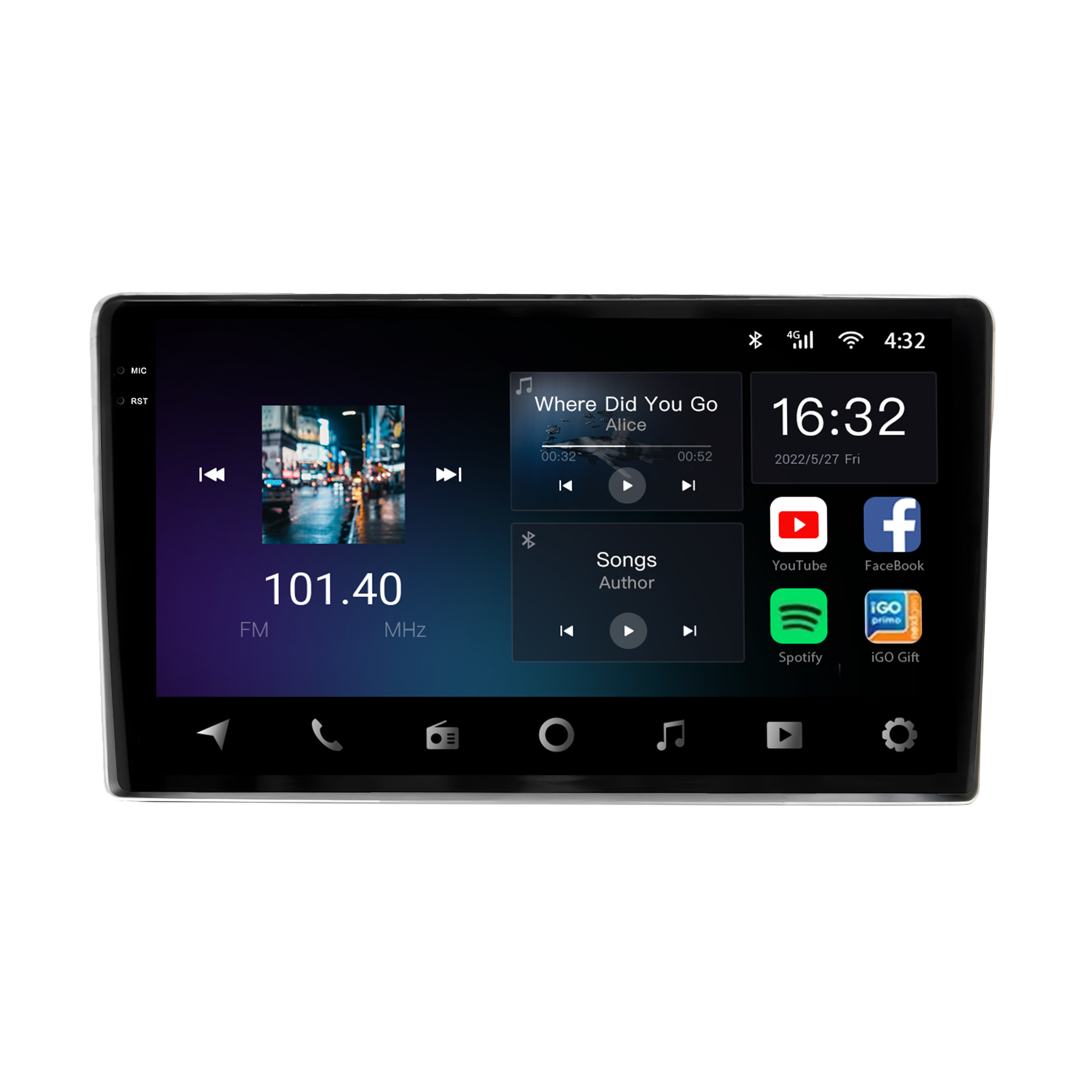 - Tela capacitiva 9 polegadas de vidro duplo super sensível ao toque e ultra resistente