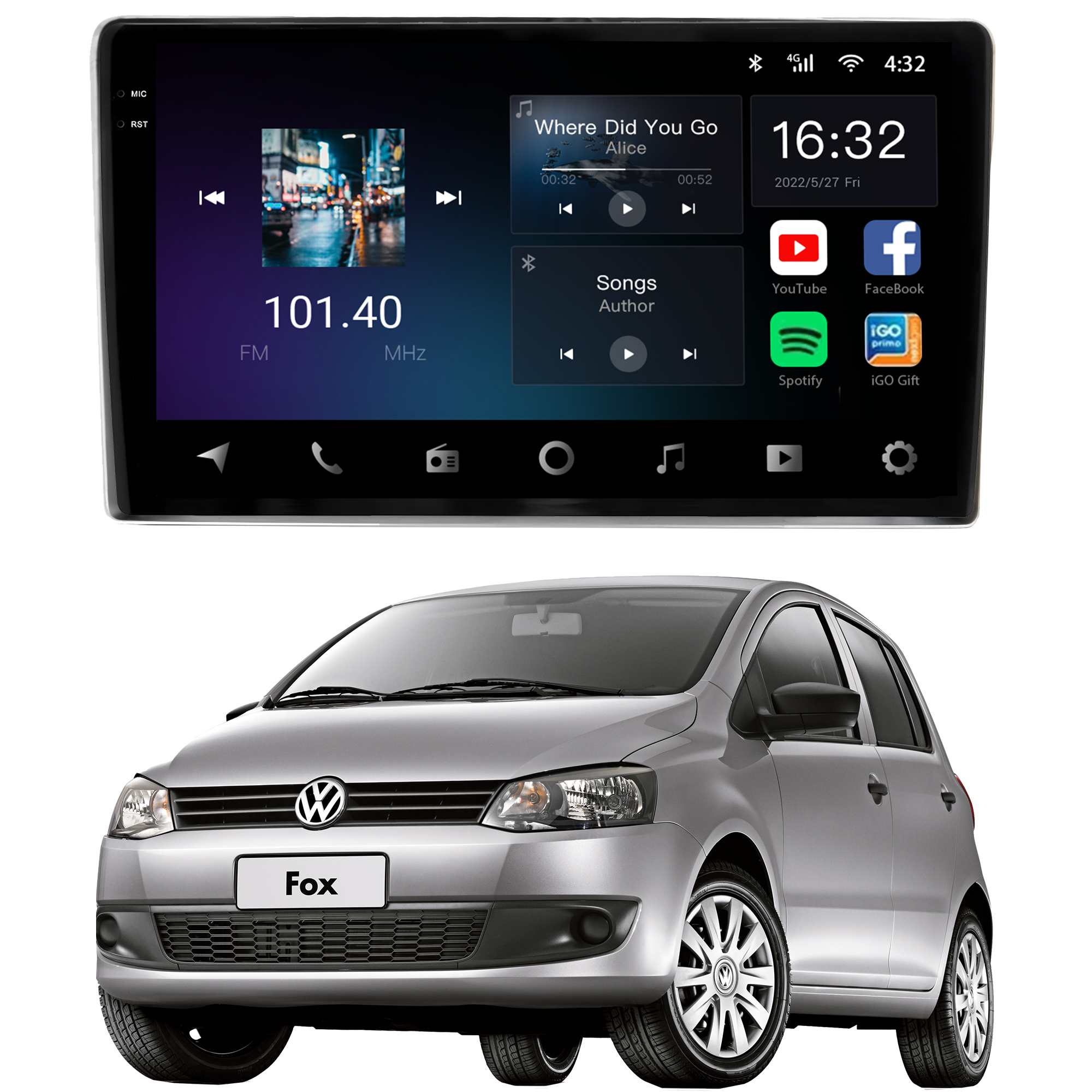 - Bluetooth: Permite realizar e receber ligações. Possui agenda telefônica com pesquisa de nomes, histórico de chamadas, funções auto-conectar.