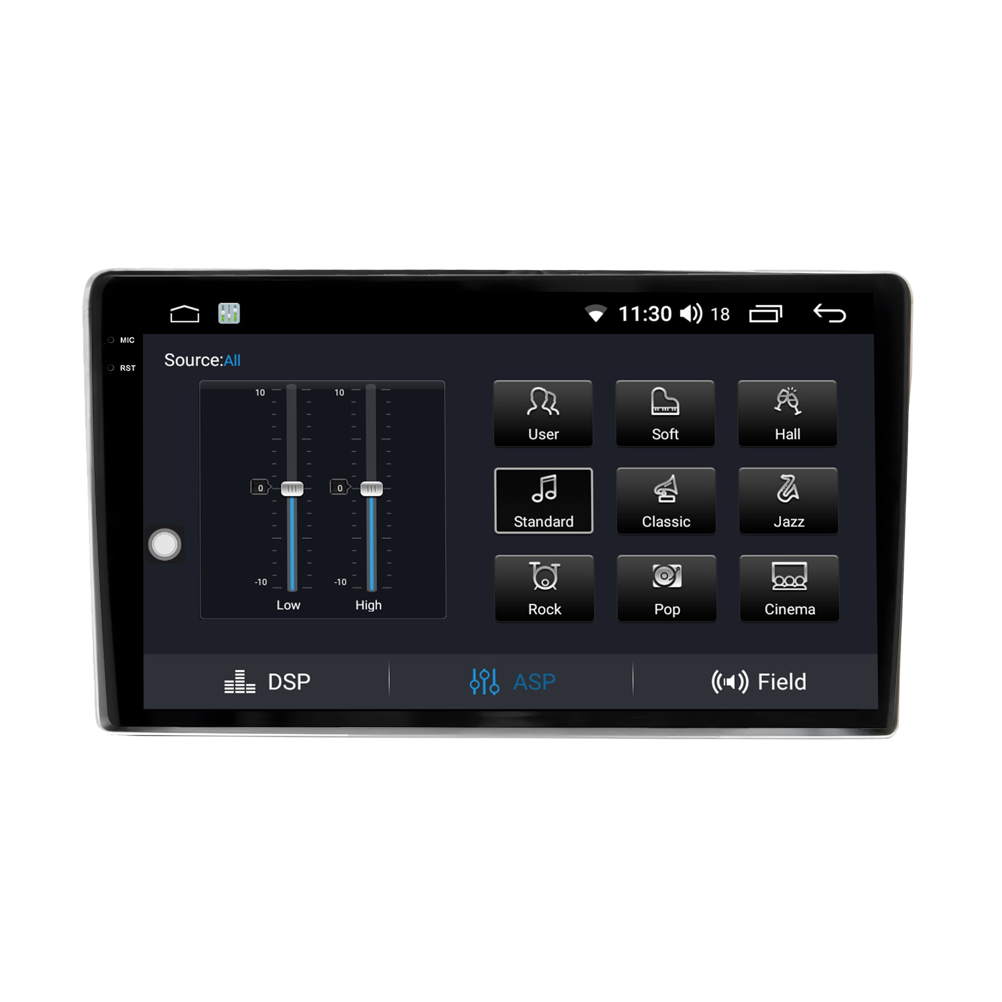 - Equalização Bass/Middle/Treble e faixas de equalização predefinidas com Classic jazz, pop, Speech e Rock.