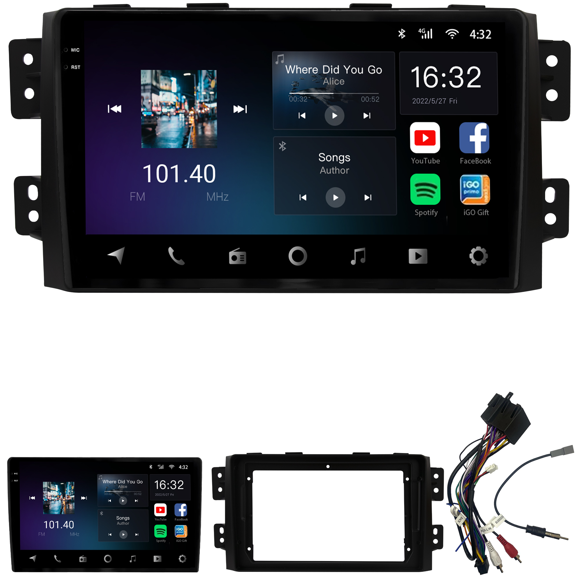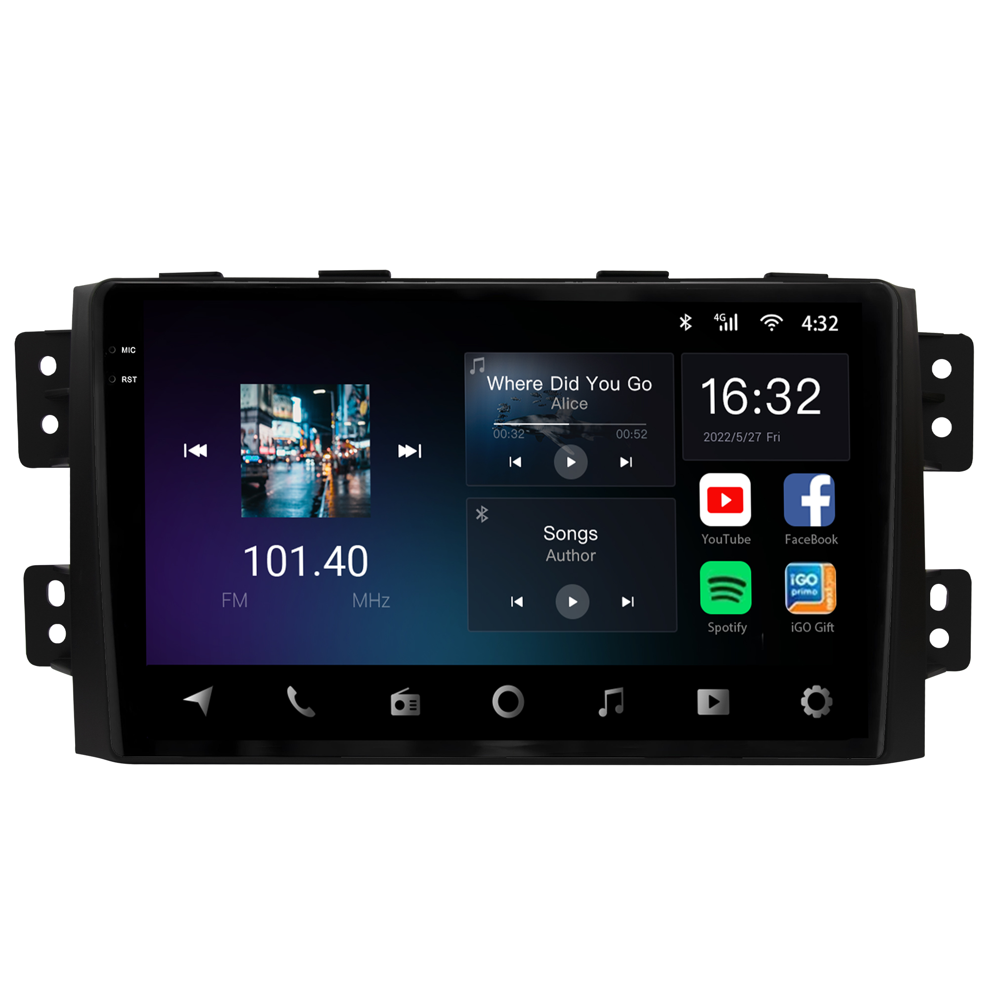 - Tela capacitiva 9 polegadas de vidro duplo super sensível ao toque e ultra resistente