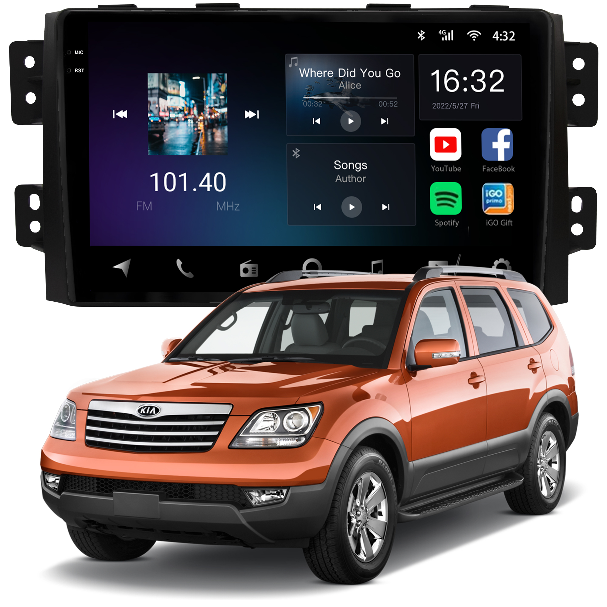 - Bluetooth: Permite realizar e receber ligações. Possui agenda telefônica com pesquisa de nomes, histórico de chamadas, funções auto-conectar.