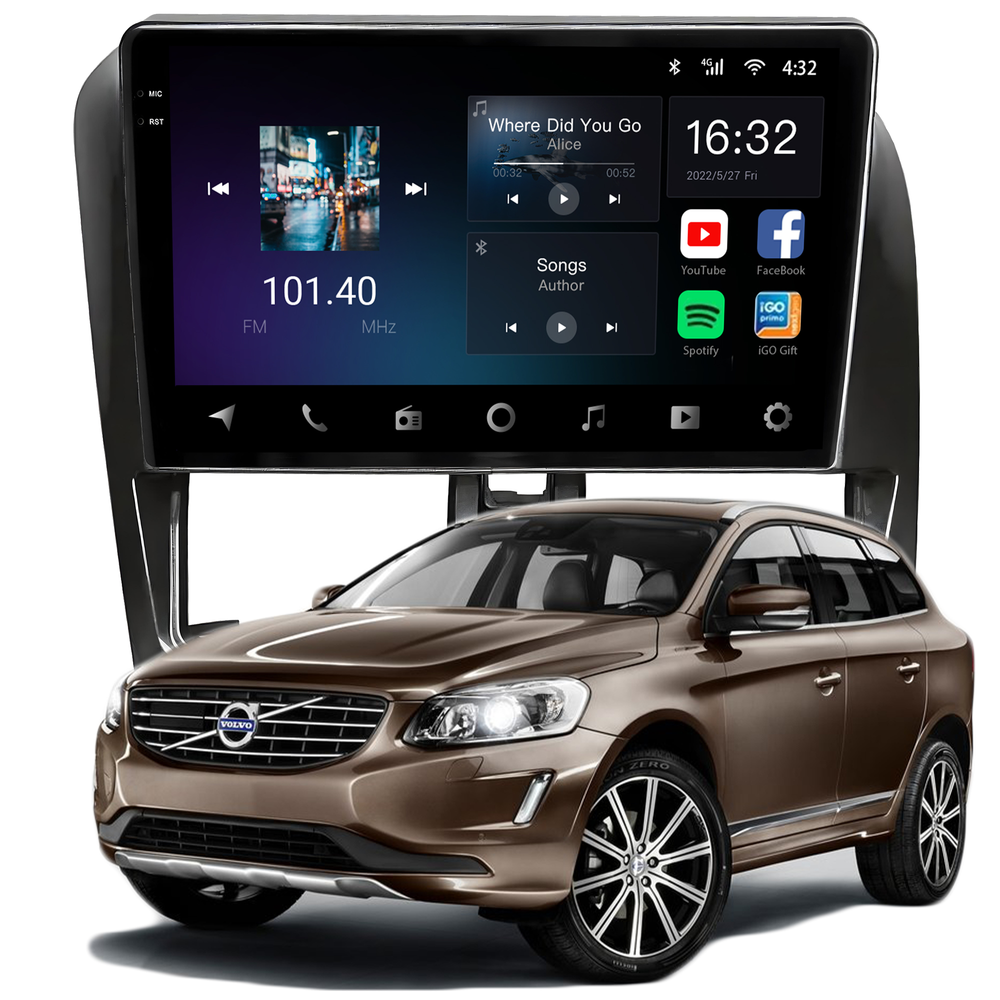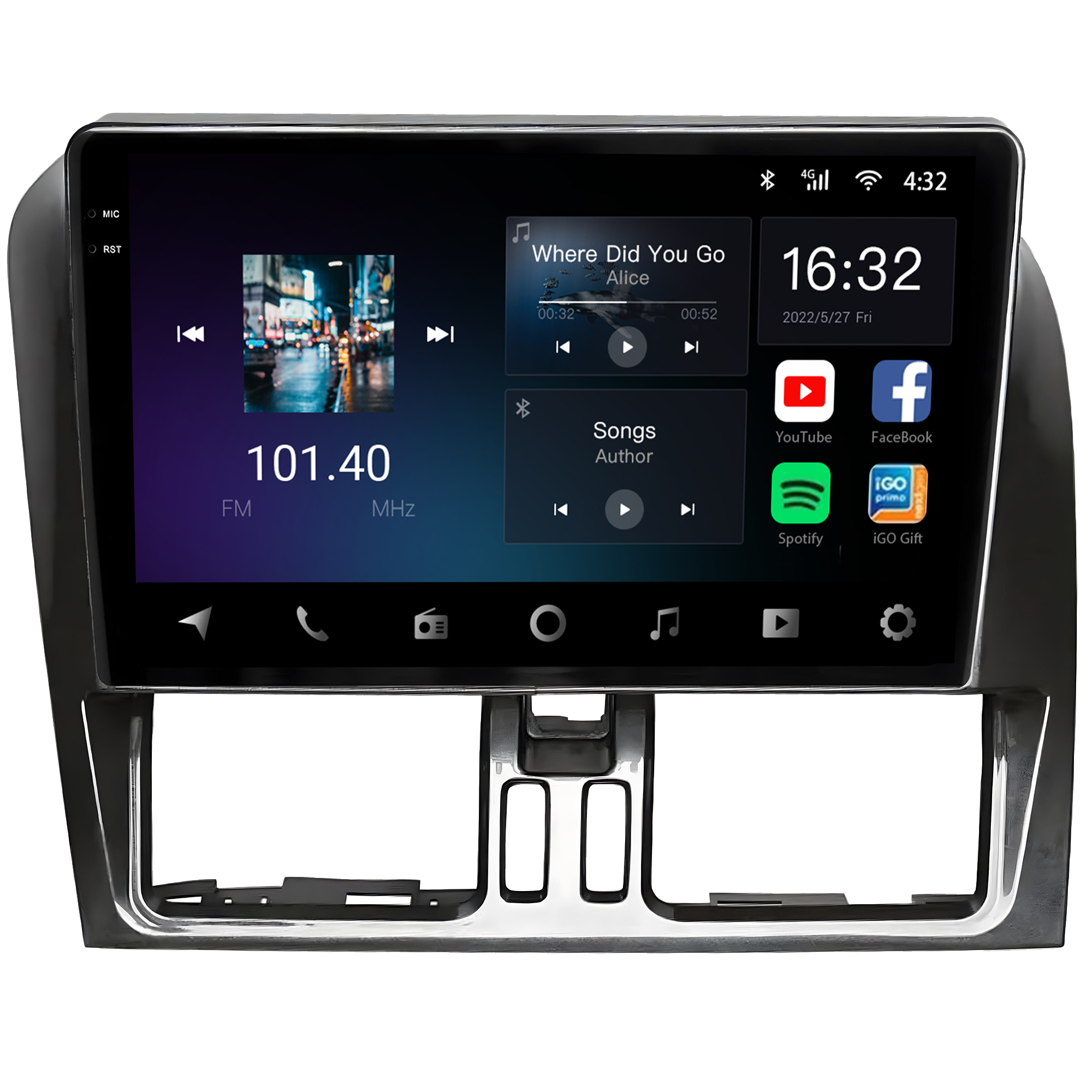 - Bluetooth: Permite realizar e receber ligações. Possui agenda telefônica com pesquisa de nomes, histórico de chamadas, funções auto-conectar.