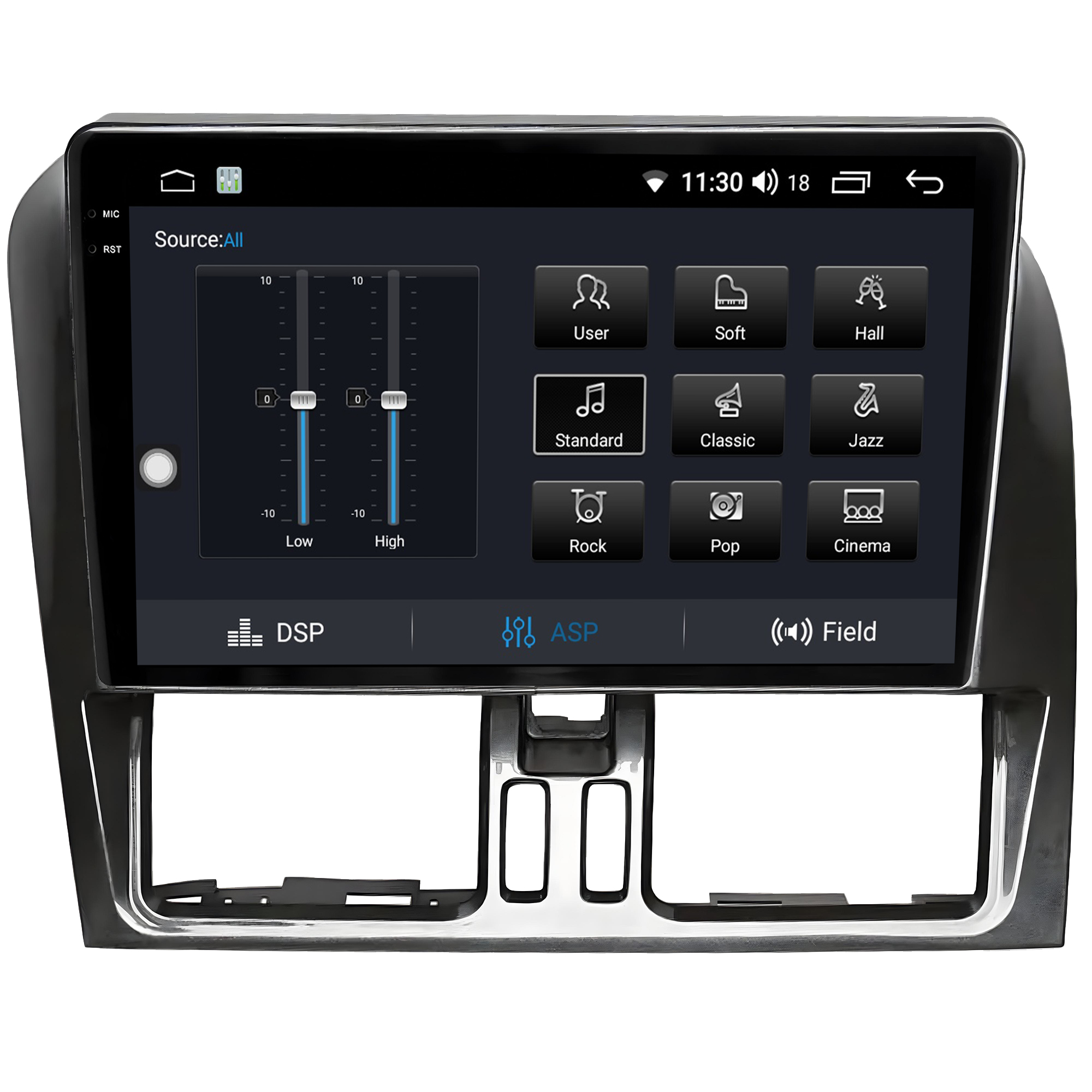 - Equalização Bass/Middle/Treble e faixas de equalização predefinidas com Classic jazz, pop, Speech e Rock.