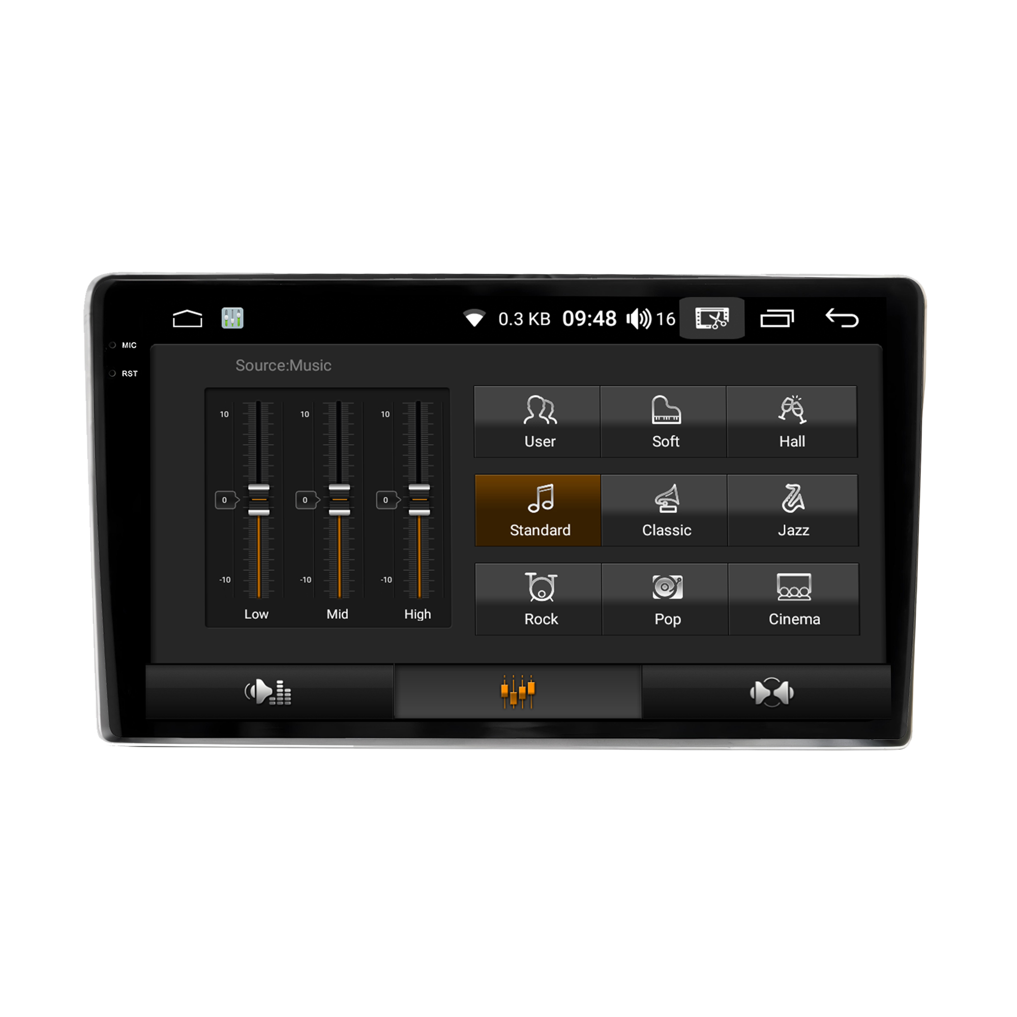 - Equalização Bass/Middle/Treble e faixas de equalização predefinidas com Classic jazz, pop, Speech e Rock.