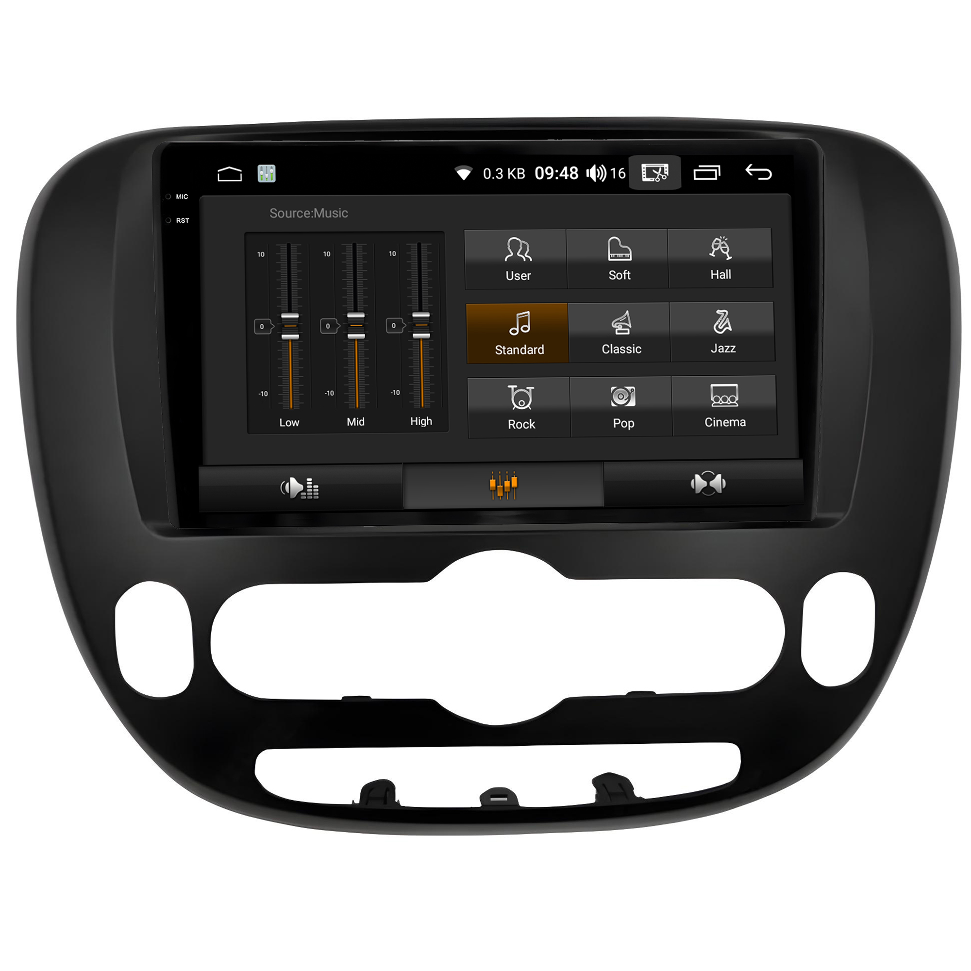 • Equalização Bass/Middle/Treble e faixas de equalização predefinidas com Classic jazz, pop, Speech e Rock.