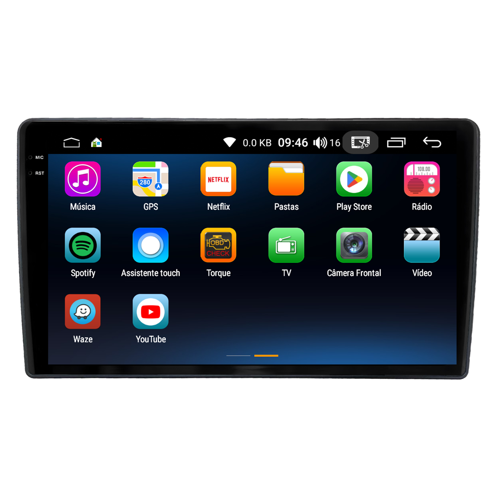 - Tela capacitiva 9 polegadas de vidro duplo super sensível ao toque e ultra resistente