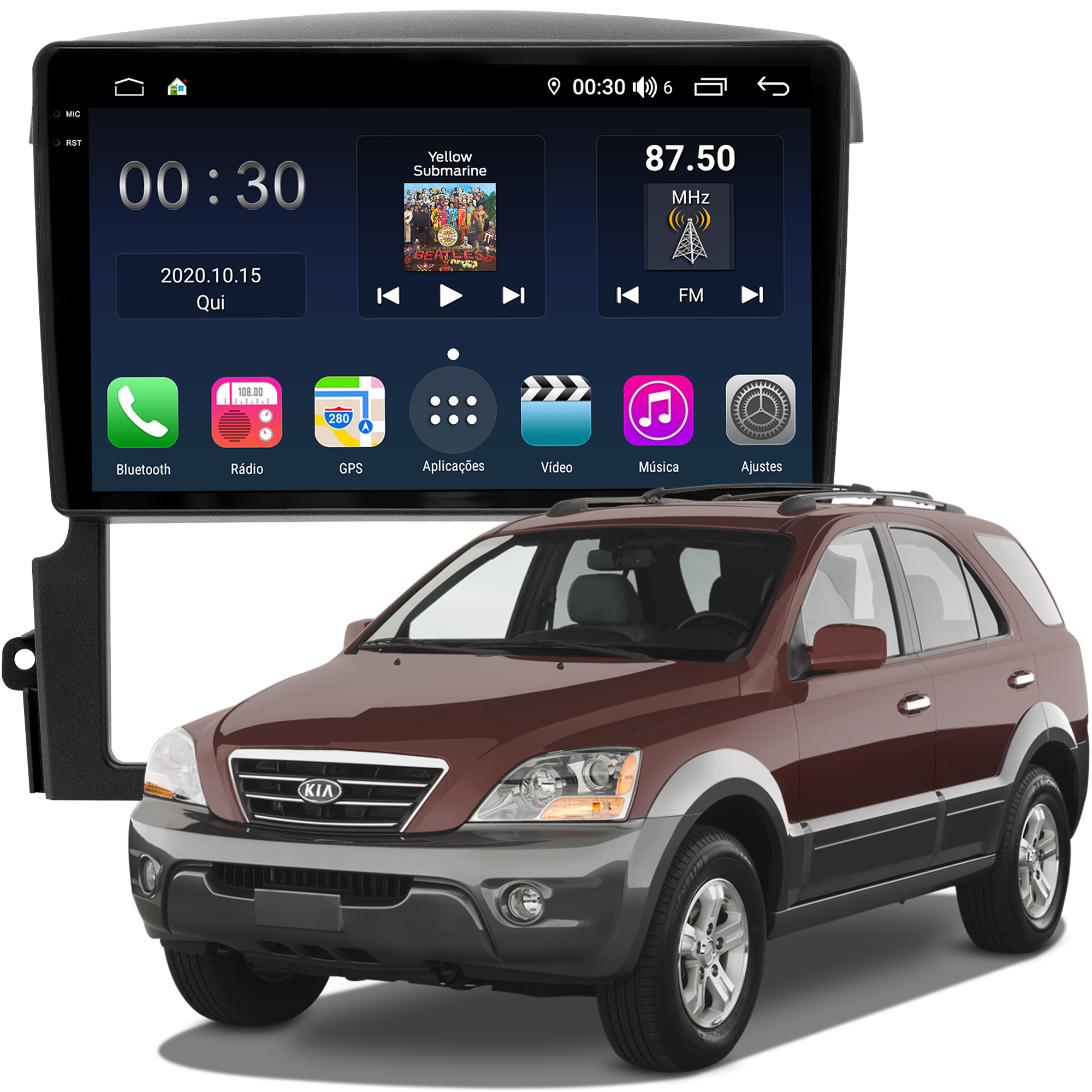 - Bluetooth: Permite realizar e receber ligações. Possui agenda telefônica com pesquisa de nomes, histórico de chamadas, funções auto-conectar.