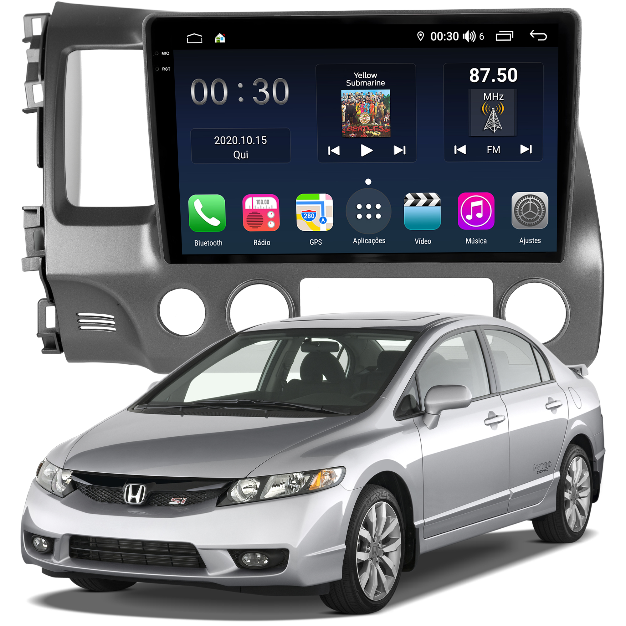 MULTIMÍDIA AIKON PRÓTON 6RAM 128GB QLED 10″ NEW CIVIC 2007 A 2011
