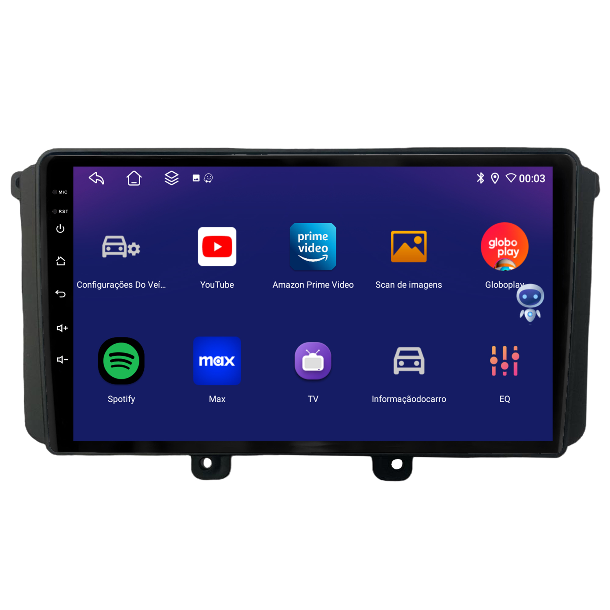 - Bluetooth: Permite realizar e receber ligações. Possui agenda telefônica com pesquisa de nomes, histórico de chamadas, funções auto-conectar.