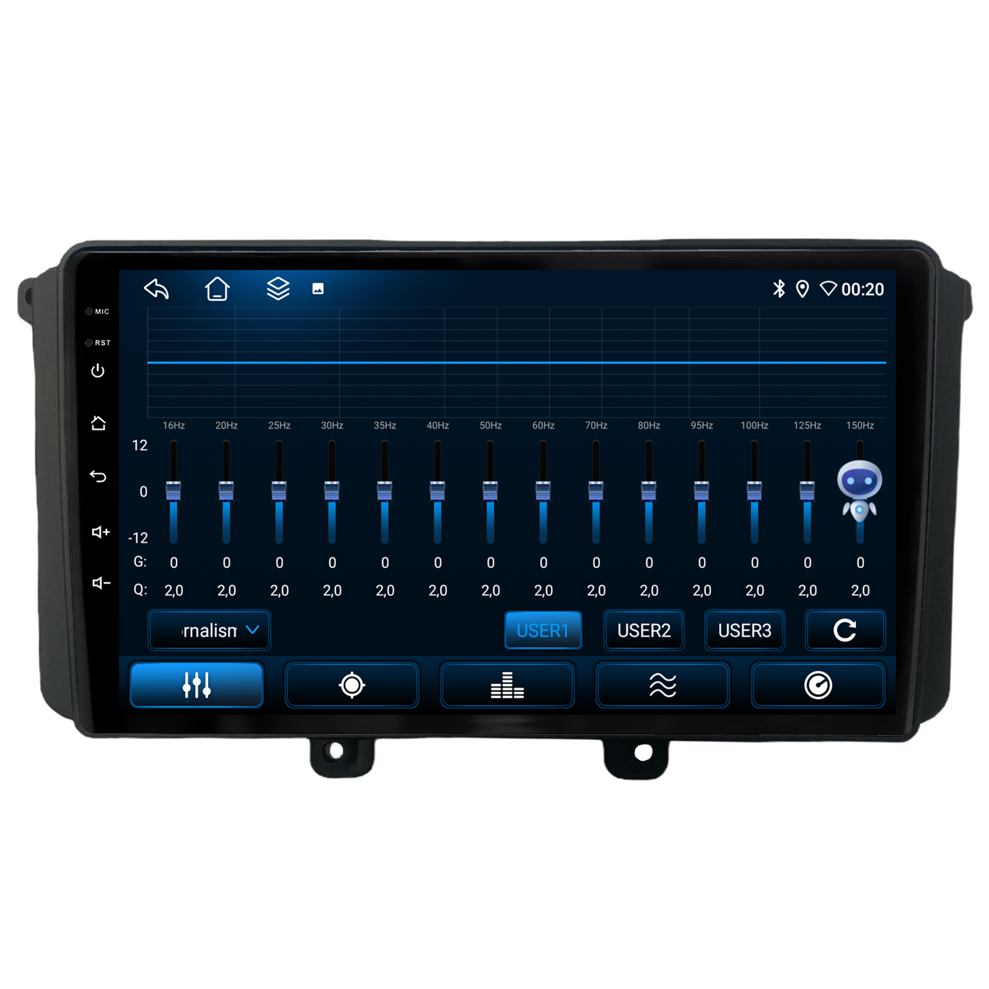 - Equalização Bass/Middle/Treble e faixas de equalização predefinidas com Classic jazz, pop, Speech e Rock.