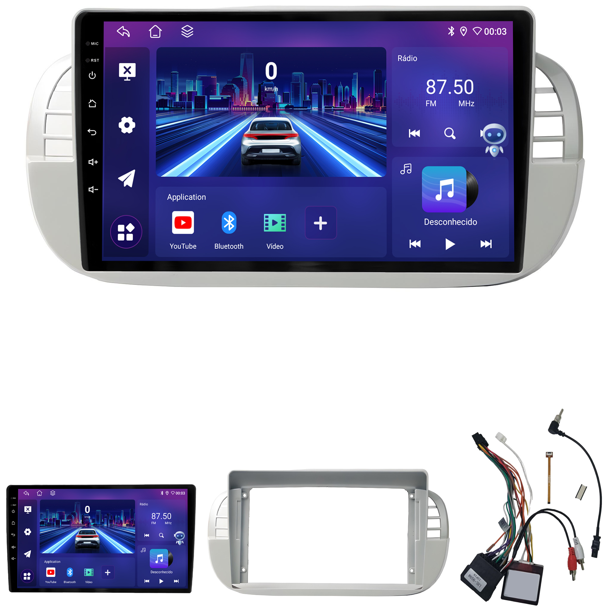 - Bluetooth: Permite realizar e receber ligações. Possui agenda telefônica com pesquisa de nomes, histórico de chamadas, funções auto-conectar.