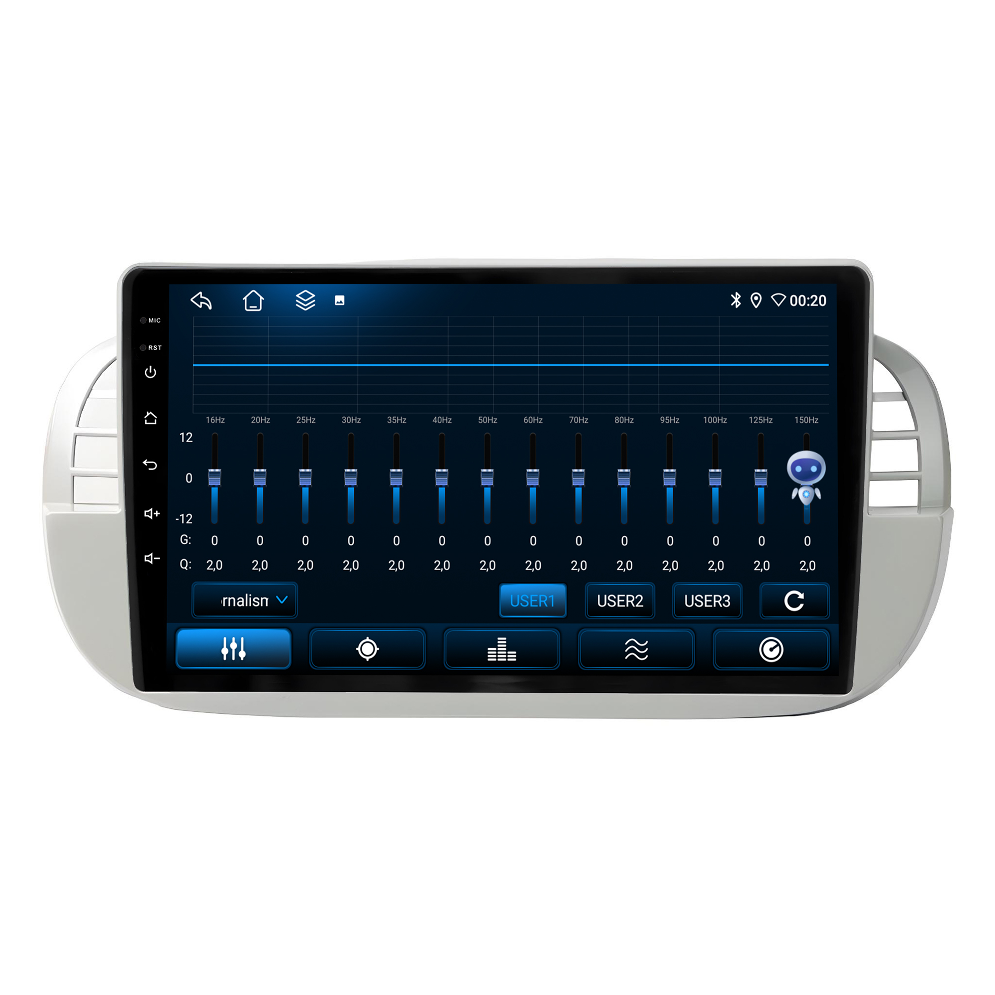 - Equalização Bass/Middle/Treble e faixas de equalização predefinidas com Classic jazz, pop, Speech e Rock.