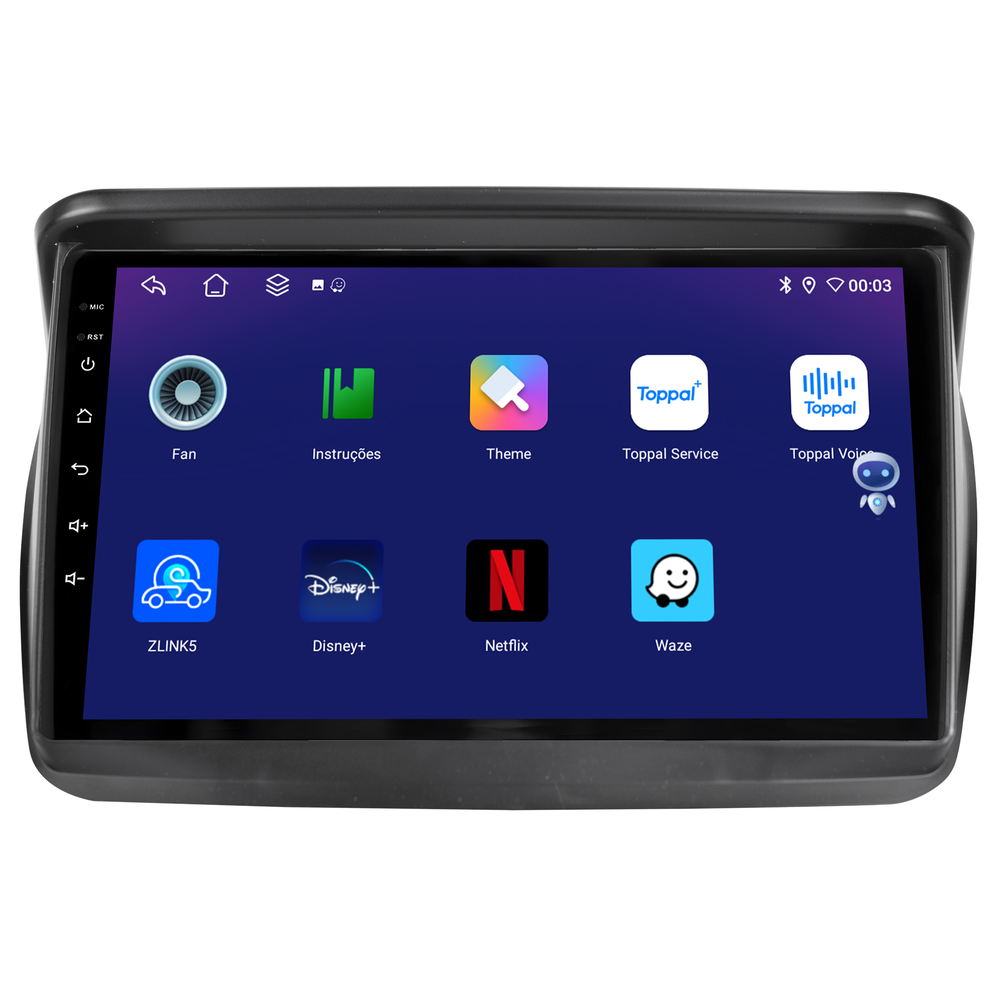 - TOPPAL PRO ( Comando de Voz ) : Permite utilizar os aplicativos e funções da Multimídia apenas dizendo o que você quer fazer. Por exemplo: Abrir o WhatsApp, ele irá abrir automaticamente o aplicativo do WhatsApp sem você precisar apertar o ícone do WhatsApp. Simula como se fosse a Siri do iPhone por exemplo.