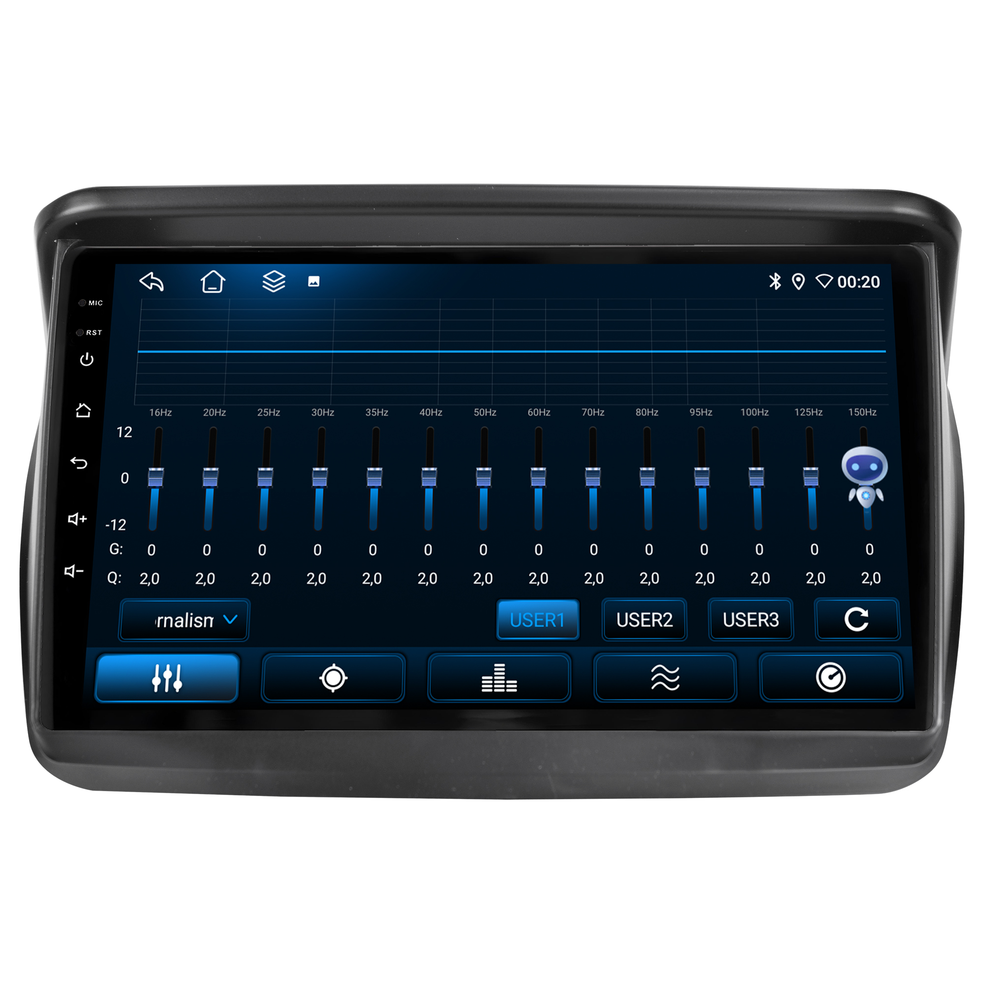 - Equalização Bass/Middle/Treble e faixas de equalização predefinidas com Classic jazz, pop, Speech e Rock.