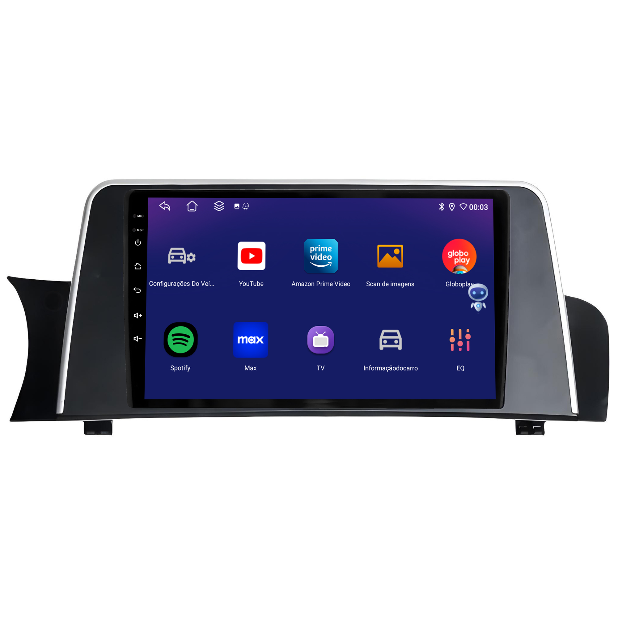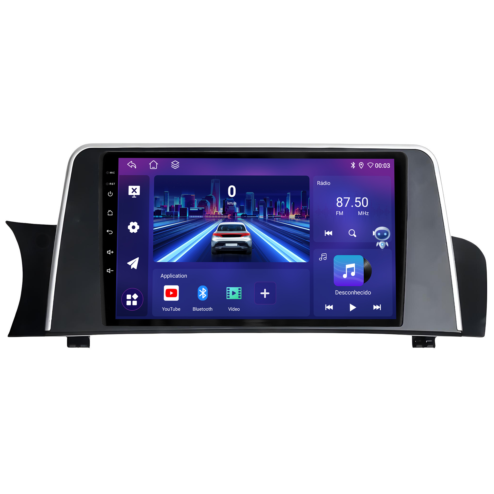 - Bluetooth: Permite realizar e receber ligações. Possui agenda telefônica com pesquisa de nomes, histórico de chamadas, funções auto-conectar.