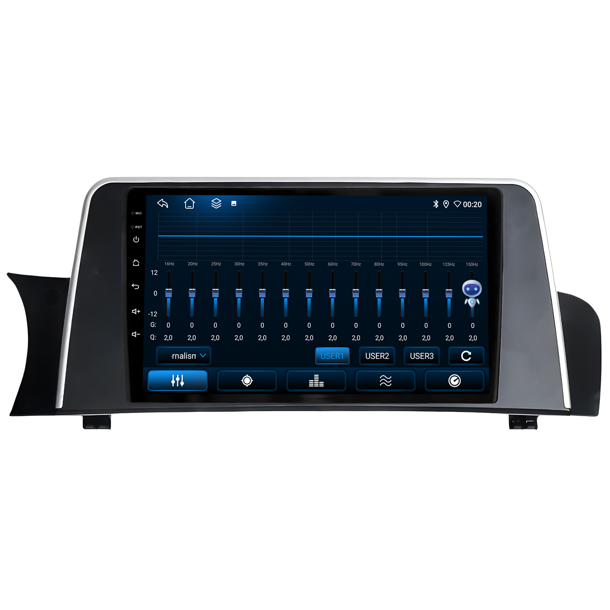 - Equalização Bass/Middle/Treble e faixas de equalização predefinidas com Classic jazz, pop, Speech e Rock.