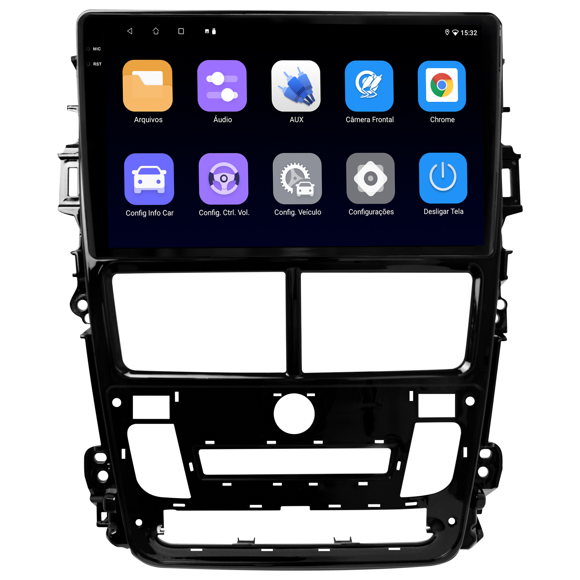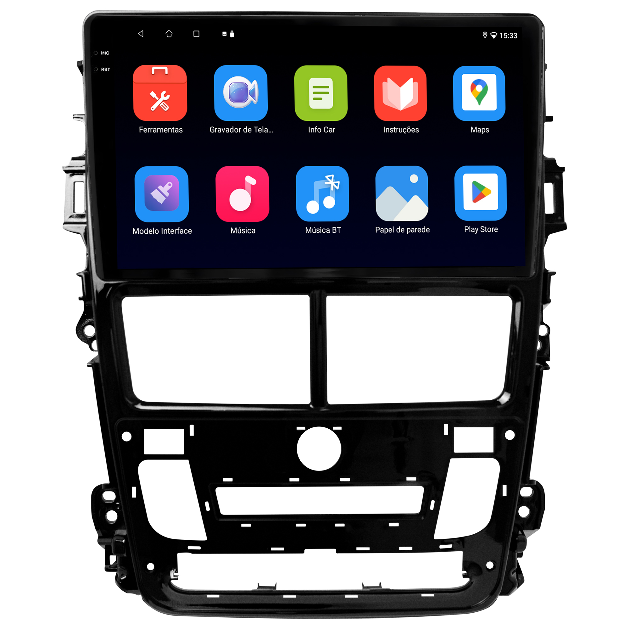 • Moldura específica para o painel do seu carro
