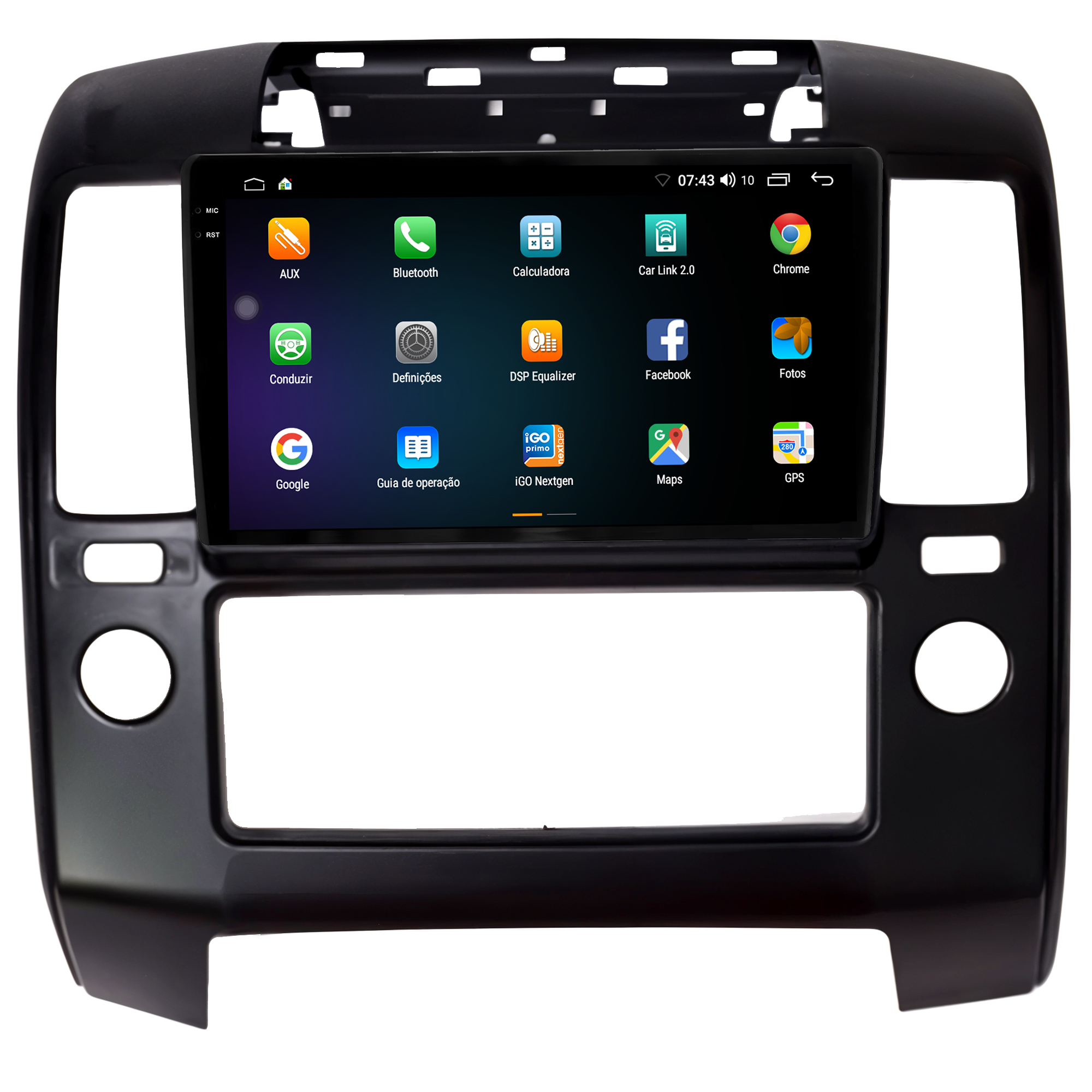 - Moldura específica para o painel do seu carro