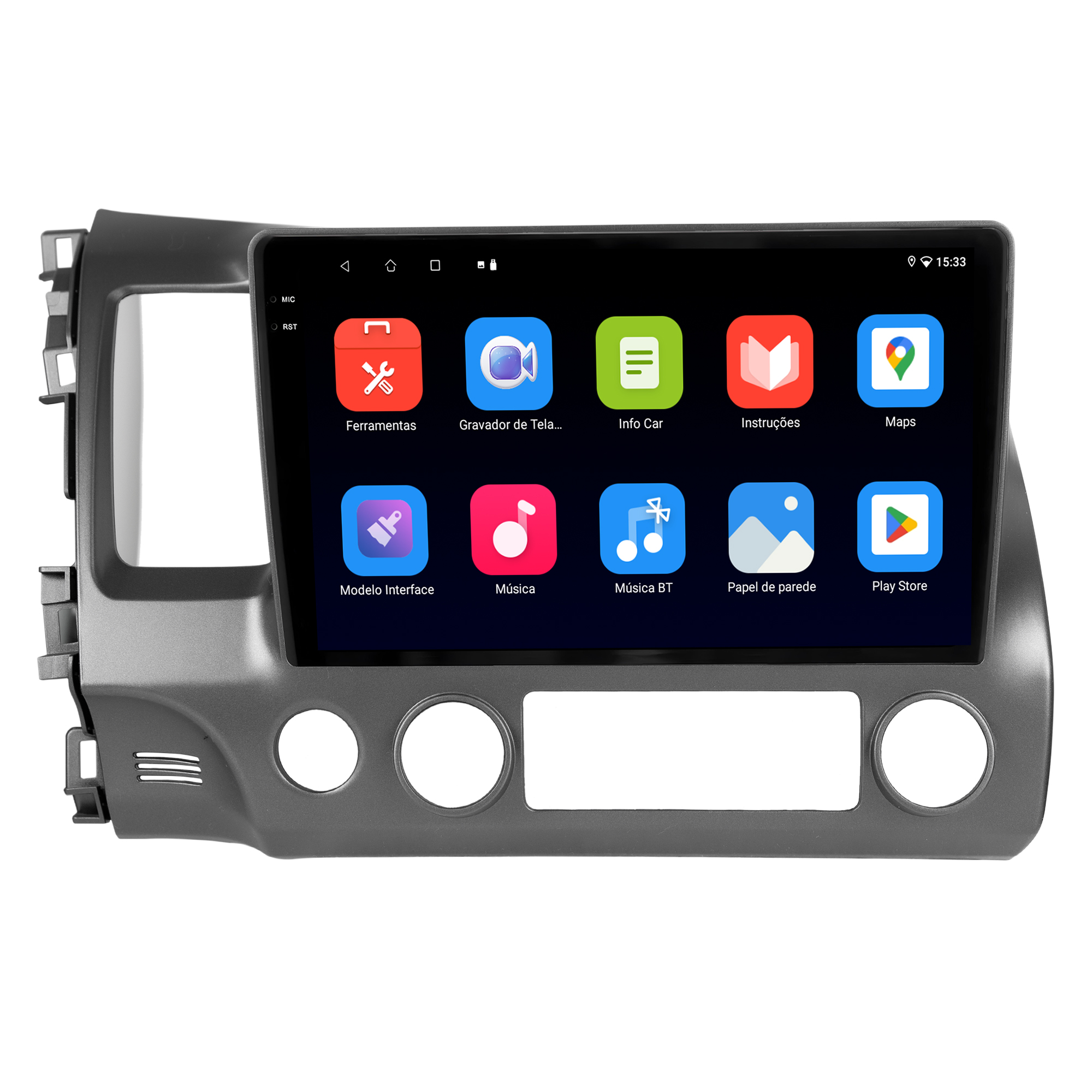 - Moldura específica para o painel do seu carro