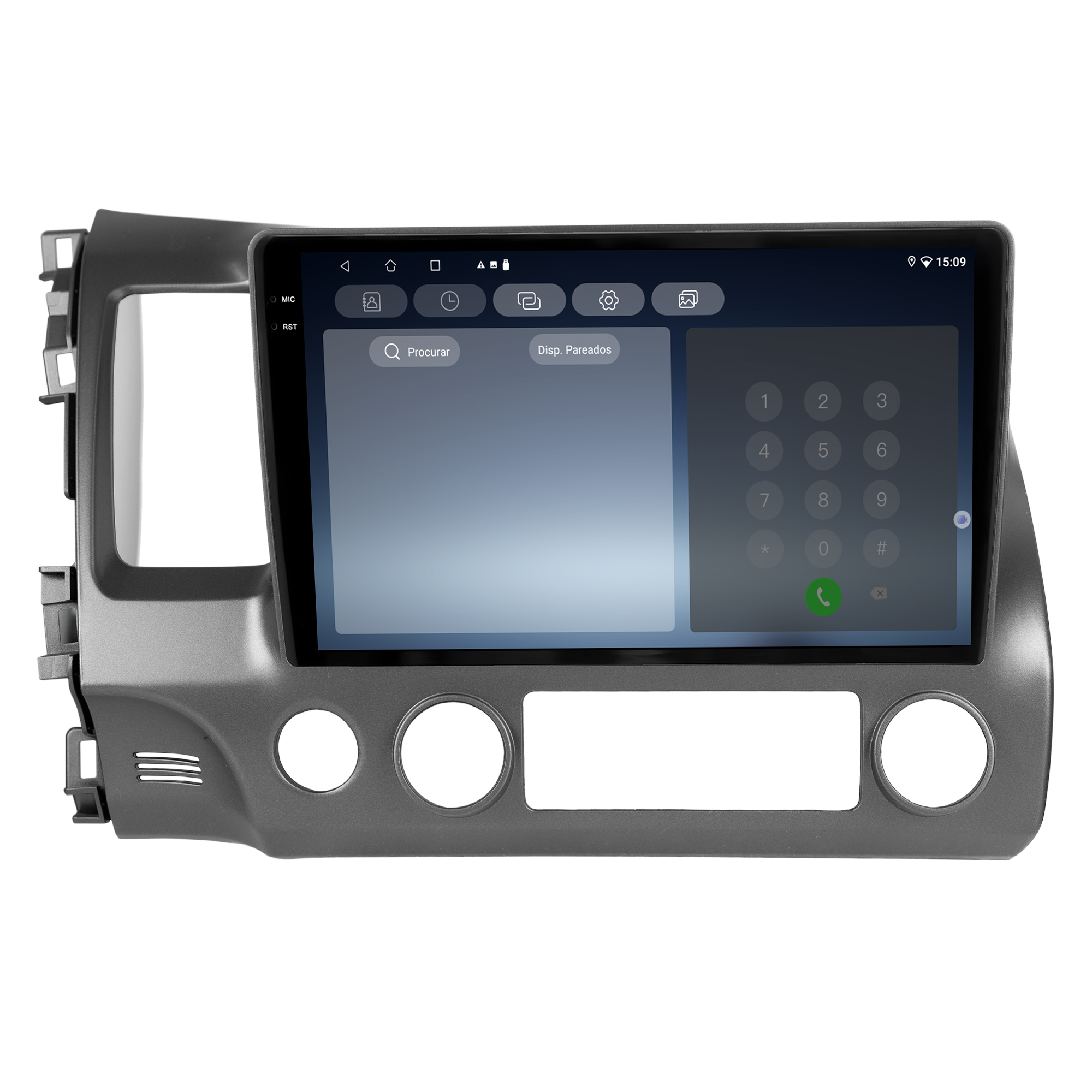 - Bluetooth: Permite realizar e receber ligações. Possui agenda telefônica com pesquisa de nomes, histórico de chamadas, funções auto-conectar.