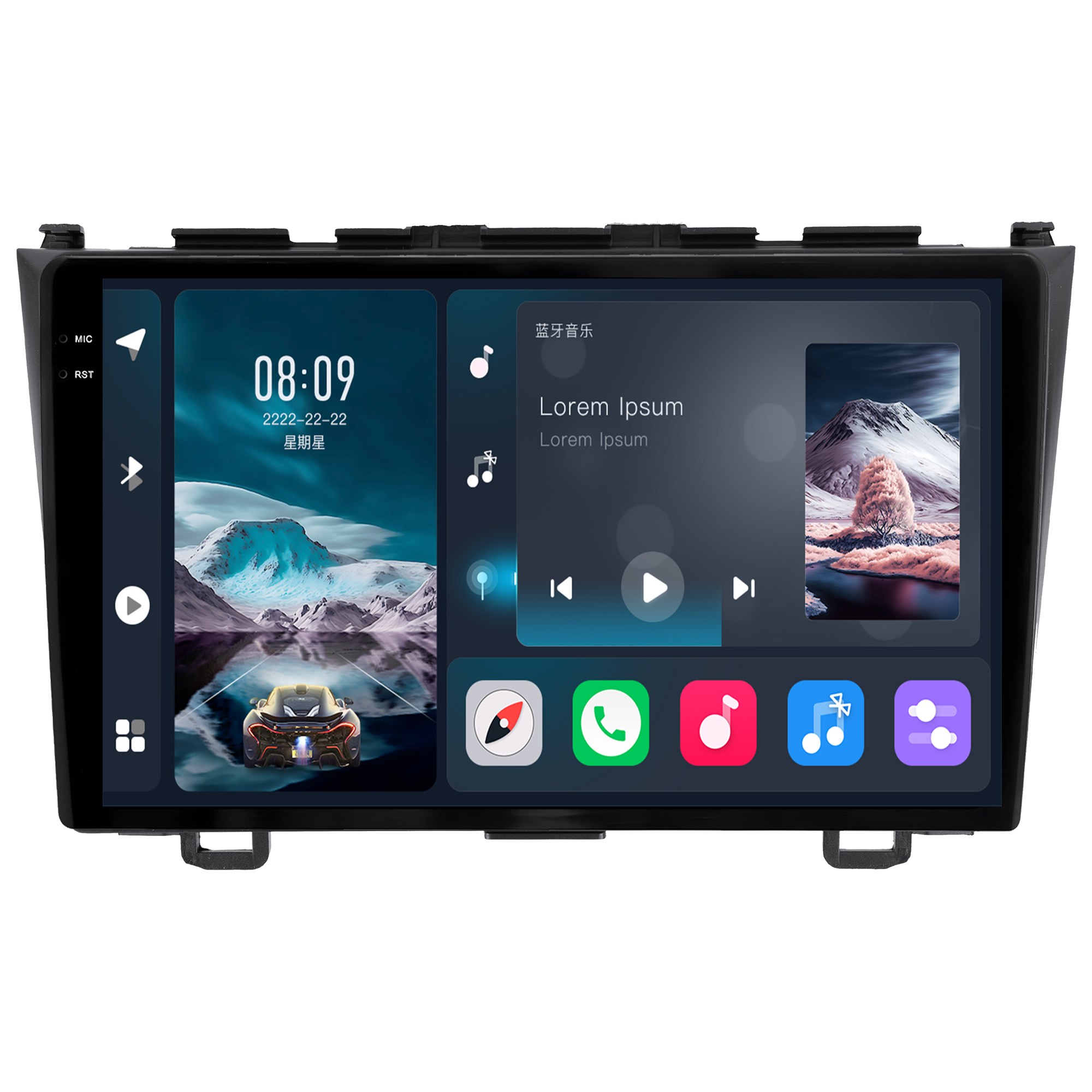- Função Multi UI: Permite a personalização da interface da multimidia com 23 opções variadas da interface principal e secundária.