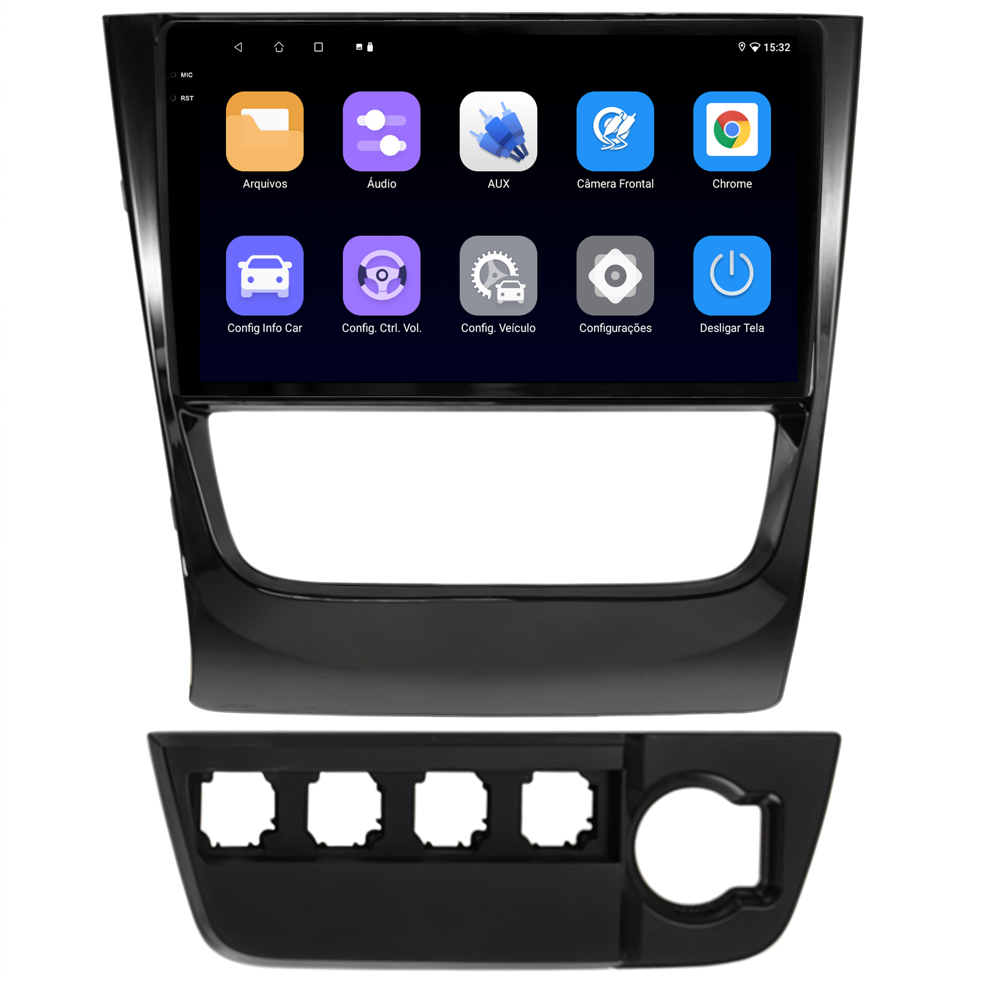 - Moldura específica para o painel do seu carro