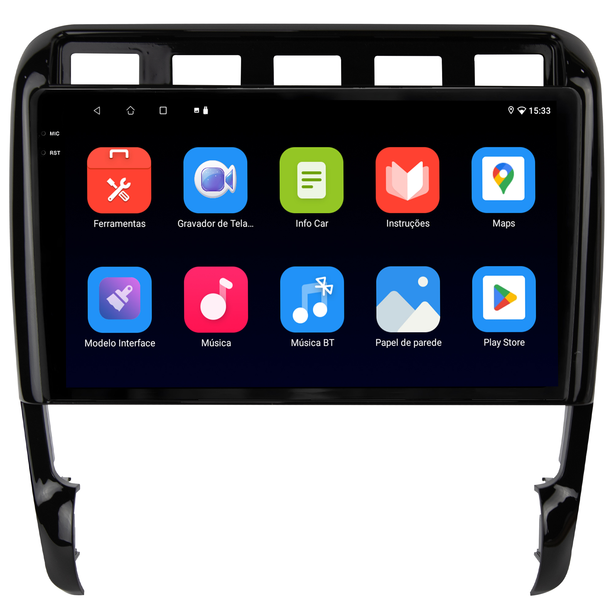 - Moldura específica para o painel do seu carro
