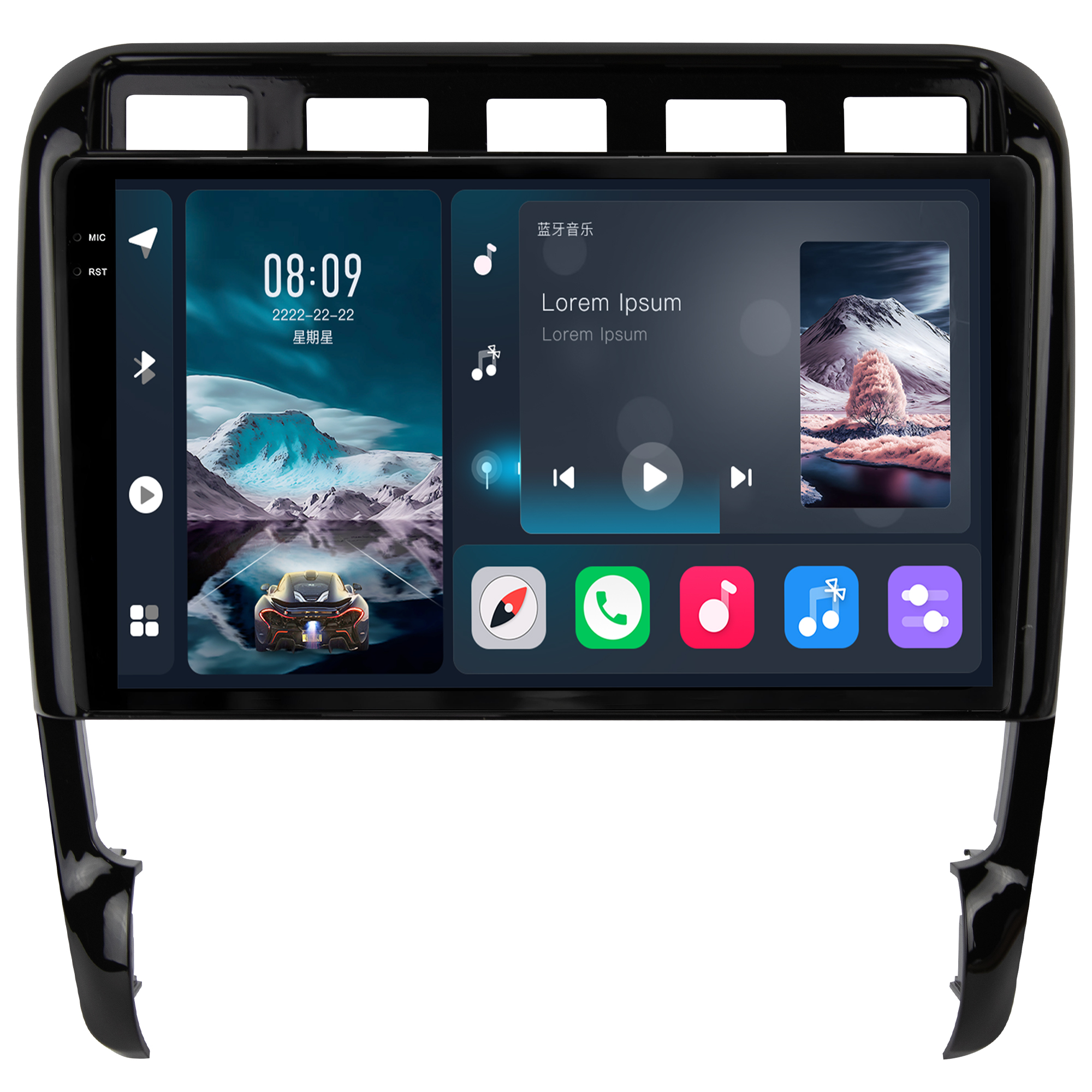 - Função Multi UI: Permite a personalização da interface da multimidia com 23 opções variadas da interface principal e secundária.